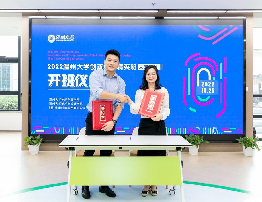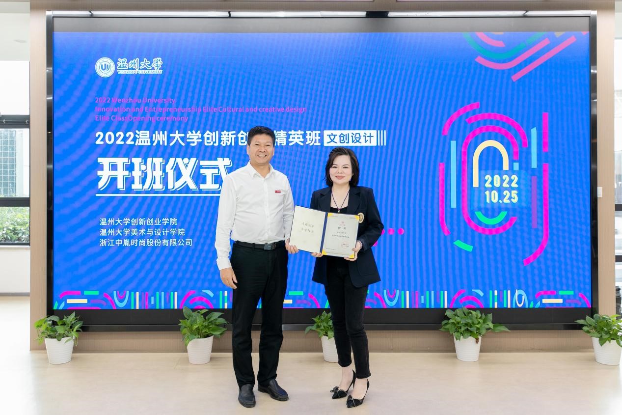 10月25日上午,beat365网页版登录官网创新创业精英班(文创设计)在学校科技综合大楼4楼路演厅举行开班仪式,beat365网页版登录官网党委副书记庄兴忠,浙江中胤时尚股份有限公司董事长倪秀华、副总经理童娟、人事经理王春丽,创新创业学院院长施永川,beat365网页版登录官网院长谢子静、党委书记叶正飞等出席开班仪式,beat365网页版登录官网副院长胡文超主持仪式。 校党委副书记庄兴忠到场见证开班仪式,并向倪秀华董事长颁发beat365网页版登录官网创新创业导师聘书。 施永川院长发表创新创业精英班开班致辞。他介绍了beat365网页版登录官网创新创业教育办学特色和荣誉成果,展望了校企合作举办的“创新创业精英班(文创设计)”在推广专业教育与创业教育深度融合的美好愿景。 施永川院长致辞 倪秀华董事长随后发表讲话。中胤时尚股份作为以时尚产品发展为核心的A股上市企业,与温大共建“创新创业精英班”,这是产学合作的新模式,能够推动创新开拓型人才培养,有效赋能温州时尚产业。 倪秀华董事长讲话 谢子静院长给创新创业精英班(文创设计)的代表授予班旗。 谢子静院长授班旗 随后,叶正飞书记和童娟副总经理代表校企双方签订中胤公司-beat365网页版登录官网精英班(文创设计)共建协议。施永川院长和谢子静院长向创新创业精英班的校内外指导教师颁发导师聘书。 签订共建协议 颁发校内外导师聘书 接着,视觉传达设计系主任刘俊代表导师组宣布了精英班的文创设计创作主题,将围绕中胤企业命题、校园文创、海岛文创等三方面开展今后的设计教学。郑淇同学代表班级发言,她向校企各方提供这次宝贵学习机会,致以谢意,并表示趁着青春年华,时光正好,在今后学习中要把握机会,大胆尝试。 宣布文创设计主题 学员代表发言 最后,美术学院张洪霞同学、机电学院杨占瑞同学分别分享了创新创业项目“土日子文创产品设计项目”“云朵眼镜:一站式数字化服务平台项目”。之后,精英班同学参观了学校众创空间。 领导嘉宾与师生合影留念 当天下午,创新创业精英班(文创设计)师生前往浙江中胤时尚股份有限公司现场考察和参加讲座。公司运营总监叶超介绍了公司的价值理念、愿景、设计成果等,并介绍“为设计”原创设计师平台。中胤公司顾问、资深市场分析专家张昕博士作为校外导师,开展了《可持续设计》主题讲座,并且与同学们互动交流。 叶超总监带领师生参观企业 张昕博士开展讲座 精英班学员合影留念