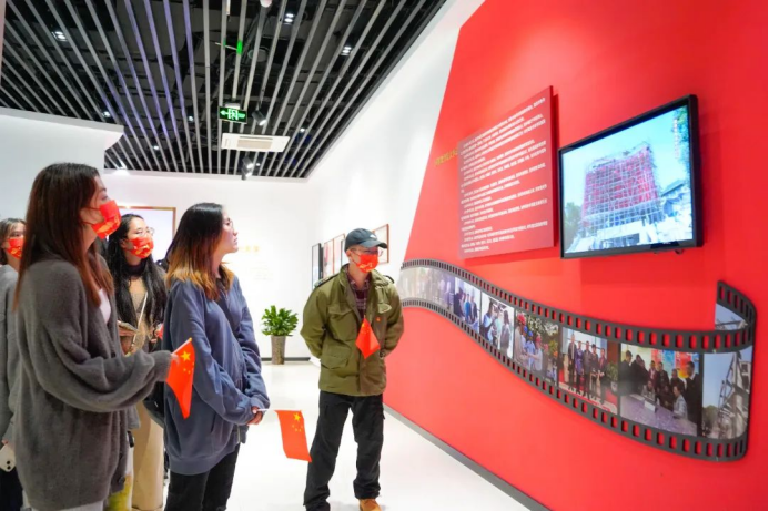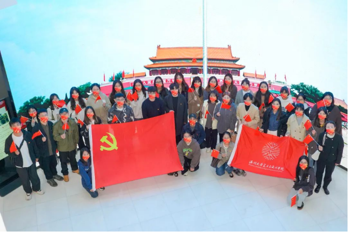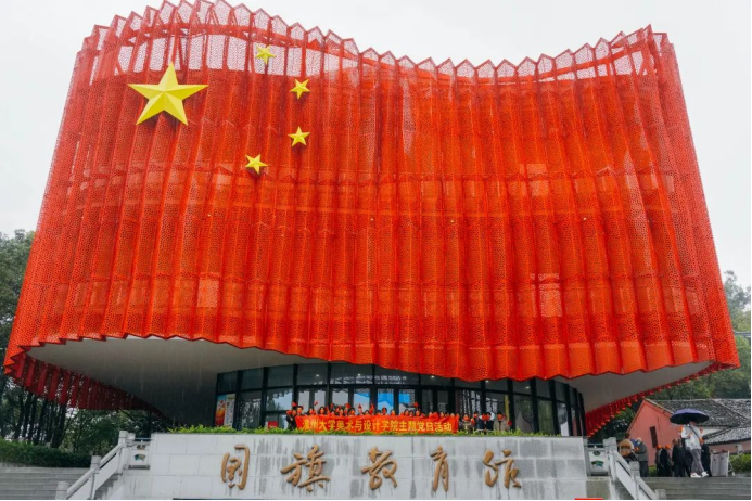 为深入贯彻习近平新时代中国特色社会主义思想,认真贯彻落实党的二十大精神,2022年11月2日下午,beat365网页版登录官网学生党员来到了全国首家综合性国旗教育馆——瑞安国旗教育馆,开展“赓续红色血脉 奋进时代征程”主题党日活动。党员们在五星红旗前行注目礼,在巨幅屏幕前体验了一次特殊的升旗仪式,在慷慨激昂的国歌声中齐声合唱,在校友曾联松先生的雕像前追忆国旗的设计历史……凝视着鲜艳的五星红旗,更加坚定了党员们奋进的步伐。 瑞安国旗教育馆位于西山之巅,总建筑面积2600多平方米,其中布展面积近2000平方米。展馆共有4层,以“天圆地方、天瑞地安,鼎盛中华、红旗飘扬”为设计主题。 忆往昔峥嵘岁月,筚路蓝缕、栉风沐雨,不变的是鲜红的旗帜,不变的是华夏儿女赤诚的初心。移步至国旗诞生厅内,讲解员向大家讲述了设计者曾联松从缘起到邂逅、与五星红旗之间的故事。通过五星红旗诞生的故事,党员重温了国旗的设计理念。了解国旗的制作、国旗的涵义、国旗的标准等内容,感受“一旗、一人、一馆、一城”的情缘。 五星红旗在设计上非常讲究,整体布局中偏庄严庄重。该旗采用非对称的设计,旗面左上方缀五颗黄色五角星。一星较大,其外接圆直径为旗高十分之三,居左;四星较小,其外接圆直径为旗高十分之一,环拱于大星之右。利用向心角度变化每一个角都能指向大的五角星,星布成椭圆形,大星导引于前,小星环绕于后,恰似众星拱北斗的红地五星旗,同时以大小之势,呈现出了这组图案的张力与立体感,并在视觉感官上给人以协调和平衡。同时五星红旗又叫红地五星旗,红色代表革命,五颗红星象征着中国革命人民的大团结,是中华人民共和国的象征和标志。它见证着牺牲与奉献,代表着神圣与崇高,寄托着热爱与自豪。 浩渺行无极,扬帆但信风。学生党员们在党旗前重温入党誓词,在馆内外唱响《我爱你,中国》,表达青年学生党员的爱国情、强国志、报国行。 本次主题党日活动,以国旗为主线引导党员深入了解红色政权来之不易、新中国来之不易、中国特色社会主义来之不易,回顾中国共产党带领祖国崛起的历史性时刻。作为新时代的美院学子,曾联松先生让后辈感受到了青年匠人需要的担当和使命。激励青年党员将不断提高专业技能,加强党史学习,提升党性修养,不忘初心,砥砺前行,不负新时代,做好答卷人。