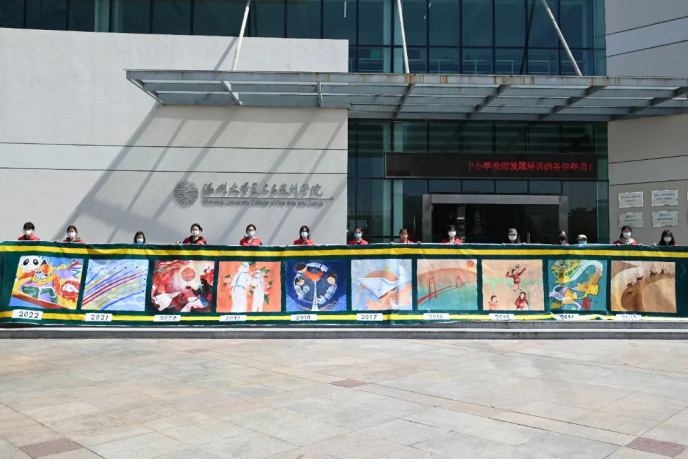 金秋十月,碧空如洗。在中国共产党第二十次全国代表大会隆重召开之际,beat365网页版登录官网的学生党员开展了“献礼二十大 回望这十年”主题绘画活动,以画笔传情,表达自己对祖国的美好祝福,向党的二十大献礼。 回望这十年 党员们以“火车”为载体,坐上了岁月的“时光机”,回到祖国的十年前去看一看。看一看带动全世界文明交融、贸易畅通的丝绸之路;看一看美丽乡村的金色麦浪,感受人们的丰收喜庆,品尝那丰厚的果实;看一看女排永不放弃的精神宣扬,一起分享胜利的喜悦;看一看港珠澳大桥开通运营的成果,尽显中国的基建实力;听一听我国首艘国产航母正式下水时黄海低沉怒吼的咆哮;听一听来自宇宙中北斗卫星的振聋发聩的声音;看一看那没有硝烟的战场,邂逅那些抗疫路上最美的笑容和伟大的平凡;望一望那遥远的星河,是“天问”将中国人的脚步迈大,书写中国人的辉煌;看一看火红颜色映照下的中国,听一听那百年阅兵豪迈庄严的赞歌;感受中国“一起向未来的”冬奥奋斗精神。 美院的学生党员,以笔为剑,以墨为锋,画出了日新月异的中国! 历史的车轮滚滚向前,从不停歇,一幅幅画面展现了中国革命巨轮的征程中,有与世共繁荣的信仰,有永不言败的信念,有强大的基建实力、有创新的思维,有实事求是的态度,有改革开放的勇气,有白衣执甲的天使、闻令而动的战士...... 中国,向着全面建成社会主义现代化强国的第二个百年奋斗目标迈进。到那时,如果这台“时光机”还在的话,我们再看一看曾经一起走过的路,许下的诺言和初心。