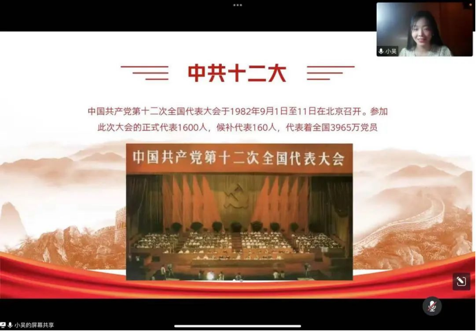 一、课程介绍 本期微讲堂由学生第三党支部党员吴佳怡进行宣讲建设有中国特色的社会主义——学习中共十二⼤、⼗三⼤。中共十二大提出了党在新时期的总任务,中共十三大提出了党在这个阶段的基本路线,并根据理论和路线确定了全面改革的基本方针和行动纲领,确定经济发展“三步走”战略部署。 二、课程回顾 中共十二大提出了“把党建设成为领导社会主义现代化事业的坚强核心”的目标,通过了新党章。新党章纠正了党的十一大党章中“左”的错误,对党的性质和指导思想、对我国社会主要矛盾和党的总任务、对党在国家生活中如何正确地发挥领导作用都作了符合新的形势的规定。 十二大是中国共产党进入改革开放和社会主义现代化建设新时期之后召开的第一次全国代表大会。十二大自改革开放以来第一次提出“建设有中国特色的社会主义”的命题,也是大会最重要的一个贡献。它把新时期的实践聚焦在“中国特色社会主义”上,为全党和全国各族人民同心协力推进改革开放和现代化建设树立了一面光辉的旗帜。十二大通过了重新修改的《中国共产党章程》,十二大党章是七大党章之后的一个里程碑,标志着中国共产党步入了执政党建设的正确轨道,奠定了以后历次党代会党章修改完善的基础。新党章规定党中央不设主席,只设总书记,从而结束了实行将近40年的党内主席制领导体制。大会的主要内容和贡献,是确定了党在新的历史时期的总任务,即:团结全国各族人民,自力更生,艰苦奋斗,逐步实现工业、农业、国防和科学技术现代化,把我国建设成为高度文明、高度民主的社会主义国家。提出这一任务,为十三大制定党的基本路线奠定了基础。围绕这一总任务,大会提出了全面开创社会主义现代化建设新局面的奋斗目标、战略重点、实施步骤和一系列方针政策。 中共十三大系统地总结了党的历史经验和新取得的经验,提出了党在新时期的总任务,这就是:团结全国各族人民,自力更生,艰苦奋斗,逐步实现工业、农业、国防和科学技术的现代化,把我国建设成为具有高度文明、高度民主的社会主义现代化强国。 十三大正式制定了党在社会主义初级阶段的基本路线,即:领导和团结全国各族人民,以经济建设为中心,坚持四项基本原则,坚持改革开放,自力更生,艰苦创业,为把我国建设成为富强、民主、文明的社会主义现代化国家而奋斗。正式制定社会主义初级阶段基本路线,是十三大载入史册的最重要贡献。十三大制定了到21世纪中叶分三步走实现现代化的发展战略:第一步,从1981年到1990年国民生产总值翻一番,实现温饱;第二步,从1991年到20世纪末再翻一番,达到小康;第三步,到21世纪中叶再翻两番,达到中等发达国家水平。“三步走”战略把我国社会主义现代化的进程具体化为切实可行的步骤,是激励全国人民为一个共同理想而奋斗的行动纲领。十三大的另一个重要内容,是政治体制改革。根据邓小平关于政治体制改革的思想,十三大明确提出政治体制改革的长远目标是建立高度民主、法制完备、富有效率、充满活力的社会主义政治体制,近期目标是建立有利于提高效率、增强活力和协调各方面积极性的领导体制。大会提出了政治体制改革的各项任务,包括:实行党政分开,进一步下放权力,改革政府工作机构,改革干部人事制度,建立社会协商对话制度,完善社会主义民主的若干制度。 三、心得体会回顾党的十二大、十三大过程中,想起小时候同爷爷一起观看《新闻联播》时,他说到:在那个年代是实行家庭联产承包责任制,在十二大以前从来都没有听说过“小康”和“翻两番”这种词语,那时候才开始初步了解小康梦,才开始有了对未来生活的憧憬。从十二大到十三大理论的基本形成,其后学生读书,工人干活,农民丰收,各司其职。这些让我学习到须得先有理论后有实践,理论支撑实践,才能在实际中有所呈现,才能增强人民对建设美好未来的信心。作为当代大学生,我认为应当学好党的百年大事记,扎牢理论知识,才能进一步实践,不断提高政治觉悟,做好本职工作,真抓实干、埋头苦干,以实际行动迎接党的二十大胜利召开。——20环艺1 王莉 这次微党课主要学习了中共十二大、十三大和“一国两制”方针的形成。我们党总是能认真总结历史经验,自觉以史为鉴,或力挽狂澜,或乘势而上,实现一次又一次的伟大历史转折。作为一名学生党员,我们要把学习党史活动和自己的学习生活工作相结合,及时总结和反思自己每个阶段的学习生活,加强自身专业学习,不断提升自身专业能力,把主要精力放在学习、生活和工作中。始终保持昂扬向上的精神状态,不畏艰难,勇于开拓,善于创新。——19服设1 曾晨从中共十二大到中共十三大,我党立足实际国情民情,不断改革经济体制,对我国经济发展提出建设性意见。在党的领导下,在全国人民的努力中,国民经济也从温饱到达小康,逐步向富裕前行。面对当前台湾问题,我们应当也必将坚持“只有一个中国”原则,紧随党的思想与脚步,坚决维护祖国主权、领土完整,遵循“一国两制”方针,愿港澳台与内地携手发展,互促共进,共建祖国的繁荣昌盛与美好未来。——19服工 柳雨辰 这次分享让我印象最深刻的是制定了经济体制改革和政治体制改的基本任务和奋斗目标,制定了“三步走”的发展战略。“三步走”的发展战