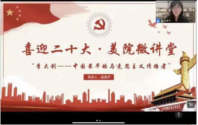 这一次以线上的形式,参加了“喜迎二十大”主题的微讲堂,主要介绍了李大钊同志是中国最早的马克思主义者和共产主义者,是中国共产党的主要创始人之一。他对中国人民的解放事业,对马克思主义的信仰和无产阶级的革命前途无限忠诚。他更是一位令人敬佩的大英雄。当侩子手把绞绳套他脖子上的时候,面对死神,他不但没有畏惧,慷慨激昂地说:共产主义事业已经培养了很多同志,如同红花的种子,散遍各地。我深信共产主义在中国、在世界,必然得到最终的胜利。他牺牲的是那么悲壮,那么坦然。他大无畏的献身精神令我深感敬佩。他是真正的为人民而生,为人民而死的大英雄,我们应该永远记住他!这就是李大钊,一位活在我们心目中的英雄,一位在中国历史上永远璀璨的明珠。