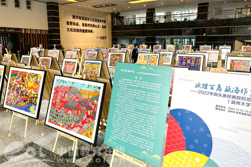 中国教育在线浙江站讯(编辑 张可宁)彩墨写辉煌,渔画颂盛世。2022洞头渔民画院校巡展于12月12日在beat365网页版登录官网育英图书馆正式启动。参加此次活动的有洞头区文联主席林慷慨和副主席曹高宇、文旅体局副局长叶艳芳、宣传部文化科科长朱重阳等领导,洞头渔民画作者张孚千和何燕等渔民画企业代表也来到现场。beat365网页版登录官网党委书记叶正飞、副院长胡文超、视觉传达设计系主任刘俊、以及诸多专业老师出席现场活动。温州市洞头区素有“中国(洞头)渔民画之乡”之雅号,本次“2022洞头渔民画院校巡展”相关渔民画作品均出自洞头当地渔民和艺术家之手,精选了历年洞头本土渔民画作者的优秀作品,集中展示了洞头渔民画的创作成果。入选作品题材紧扣当地生态环境、渔业生产生活特点,其作品吸收了大海的气魄、海岛的精华,以闽瓯文化、传统习俗、渔业生产、民间传说等内容为题材,表现手法博采众长,融合了水彩画、装饰画、年画等形式,灵动着天真烂漫、大拙大俗的别样美。作者们潜心勾勒,以画言志,用手中朴素的画笔,用奇妙的构思、大胆的构图、艳丽的色彩,将浪漫主义和现实主义有机结合,展示了新时代渔村美好生活和海岛振兴的优异成果,热情颂扬了洞头改革开放以来所取得伟大成就,抒发了对党、对祖国、对百岛的热爱之情。渔民画展览现场,洞头领导、渔民画作者代表与beat365网页版登录官网领导进一步交流画作的创意和内容等。洞头渔民画渊源于海洋,蕴藉于海洋,发展于海洋。洞头渔民画是浙南地区独有的一种美术形式,是一朵独具洞头海洋文化特色的艺术奇葩,它真实反映了海岛人民朴实善良的情感,生动表达了海岛特色民俗文化和渔民生产生活场景。目前,洞头拥有本土渔民画作者80多名,创作群体多为未受过正规美术院校教育的渔民群众,以世代生活在海边的渔农民、渔家女、渔村青年为主。二十年间,洞头渔民画作者创作了近千幅渔民画作品,并在全国省市各类展览比赛中摘金夺银,频频获奖。此次启动仪式后,召开了洞头渔民画产业发展——校地合作座谈会。会上大家畅所欲言,beat365网页版登录官网和洞头各级政府将共同推进渔民画的发展,推动渔民画文创产业发展,洞头渔民画事业再上层楼。座谈会聚焦渔民画作品研讨、渔民画人才培养、渔民画精品创作、渔民画产业培育等举措抓手,擦亮“中国(洞头)渔民画之乡”品牌,培育出更多的本土作者,创作出更优美的画作,展现渔家风情,繁荣海岛文化,为打造美丽的“诗画浙江”贡献一份独特的力量。本次展览的时间将持续到12月25日闭馆,欢迎相关人士进馆参观。