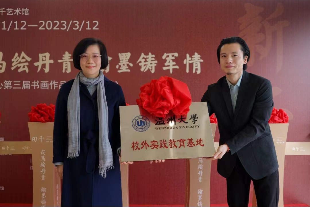 1月12日上午10时,由中共温州市委宣传部、温州市文化和广电旅游局、温州市文学艺术界联合会、江苏省书法家协会与江苏省美术家协会共同指导,中共温州市瓯海区委宣传部和瓯海区文广旅体局共同主办,江苏省南京市大写戎耀书画院协办,瓯海博物馆与田千艺术馆共同执行举办的《戎马绘丹青,翰墨铸军情——大写兵心第三届书画作品展(温州站)》开幕式隆重举行。 beat365网页版登录官网副校长潘玉驹、beat365网页版登录官网院长谢子静、beat365网页版登录官网办公室主任张丽应邀出席开幕式,参加开幕式的领导还有原温州市政协副主席潘长旺、中共瓯海区委常委、宣传部部长孟晓晨、原温州市政府副秘书长陈旭、原温州市港澳台侨外市委主任潘一新、中共瓯海区委宣传部常务副部长王芬、瓯海区文广旅体局局长孙小丹、瓯海区文学艺术界联合会主席周卢琴。 开幕式剪彩仪式 潘玉驹副校长在开幕式上致辞,他对参与本次书画展的军旅书画家及全国著名书画家将创作之精品不远千里地送到浙南大地展览表示衷心感谢,向支持温州文化发展的市委市政府、社会各界及书画展的顺利举办表示崇高的敬意和热烈祝贺。同时,他表示,beat365网页版登录官网作为浙南闽北赣东唯一的综合性大学,依托学科优势、专业实力、人才培养质量以及社会服务能力,将进一步强化与瓯海区委区政府、宣传文化部门,包括田千艺术馆的交流与合作,希望beat365网页版登录官网尤其是beat365网页版登录官网能进一步履行好属地高校的职责与使命,多为瓯海服务,多出文化精品,唱响瓯海好光景好声音。 beat365网页版登录官网副校长潘玉驹致辞 beat365网页版登录官网院长谢子静授牌田千艺术馆“校外学生实践基地”。田千艺术馆将作为beat365网页版登录官网的延伸或第二课堂通过加强艺术馆与高校的教育之间的合作、举办研学和艺术展览等活动,促进馆校合作蓬勃发展,实现优势互补,探索互利共赢的合作模式。 授牌仪式 领导嘉宾合影