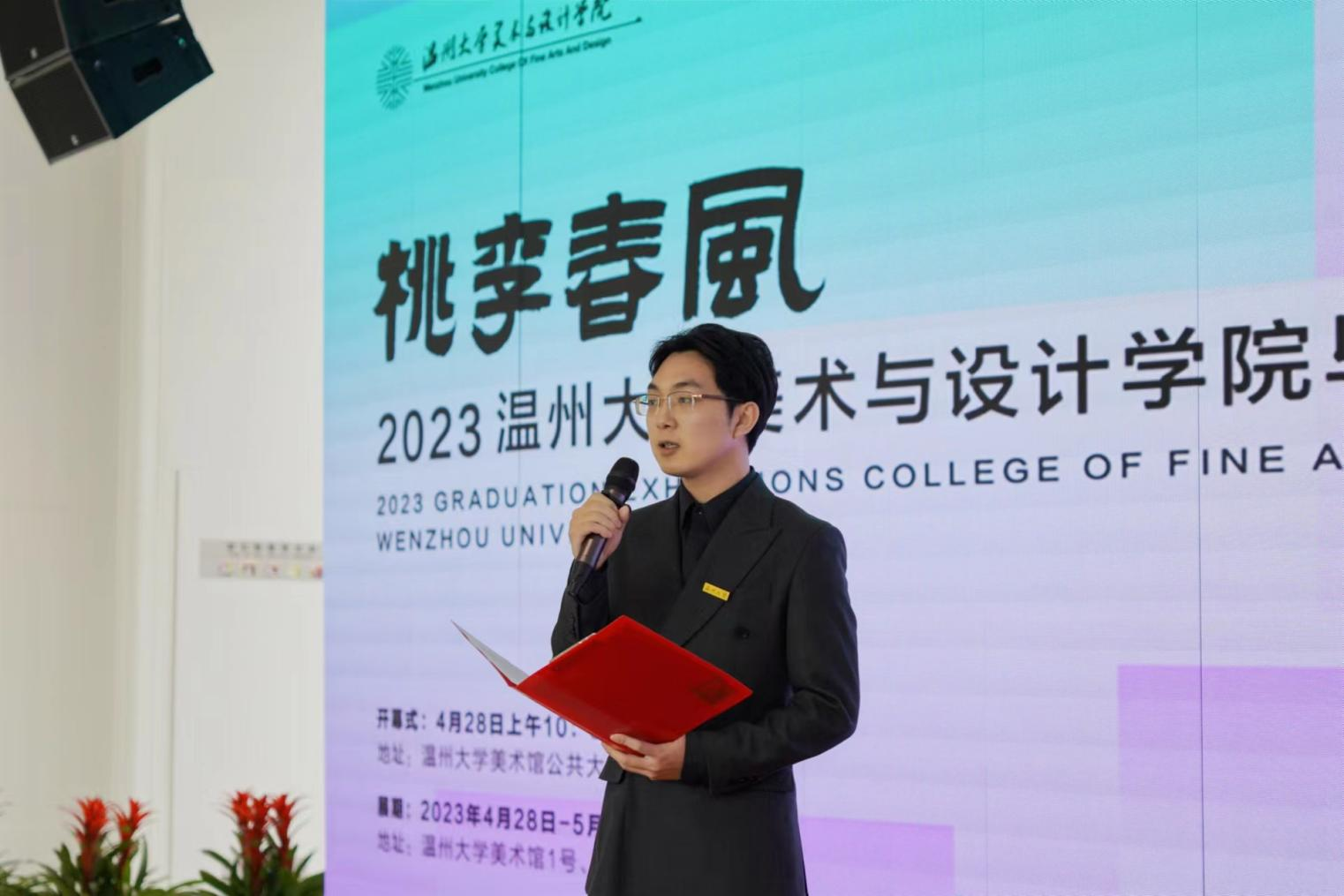 4月28日上午,“桃李春风——2023beat365网页版登录官网毕业作品展”在温州大学美术馆隆重开幕。本次展览展出了艺术硕士(美术)及美术学(师范)、视觉传达设计、环境设计3个本科专业161名毕业生的作品。该展由中共温州市委宣传部、温州市文化广电旅游局、温州市文学艺术界联合会、beat365网页版登录官网联合主办。 beat365网页版登录官网校长赵敏,beat365网页版登录官网党委委员、组织部长郑信军,温州市文联党组成员、副主席谢子康,温州市公共外交协会执行副会长兼秘书长潘一新,浙江省美术家协会副主席、温州市美术家协会主席张成毕,beat365网页版登录官网研究生院院长刘玉侠,beat365网页版登录官网教务处副处长赵燕,beat365网页版登录官网意大利分校校长吴敏,beat365网页版登录官网院长谢子静、党委书记叶正飞,beat365网页版登录官网校友会会长金纬,温州商学院传媒与设计艺术学院副院长张生,浙江工贸学院设计与数字艺术学院副院长徐晓斌,浙江中胤时尚股份有限公司副总经理陈春琴,温州龙溪艺术馆馆长沈中杰,beat365网页版登录官网副院长顾任飞、副书记叶如芳等领导与嘉宾亲临现场。参加开幕式的还有其他行业、企业、兄弟院校的代表、媒体记者以及师生代表。温大beat365网页版登录官网副院长胡文超主持开幕式。 beat365网页版登录官网院长谢子静参加开幕式并讲话。她向与会领导和嘉宾表示欢迎,对全体指导师和毕业生们表示感谢和祝贺。她指出,今年恰逢beat365网页版登录官网办学90周年,展览活动以“桃李春风”为主题,展示着教师春风化雨的谆谆教导,培养了一届又一届的毕业生,结得满园硕果。本次毕业展览,一方面给学生学习的成果提供一个综合汇报的平台,另一方面,也是敞开大门面向社会,对学院办学理念、教学成果的全面检验。她对毕业生寄予希望,希望他们勿忘“崇文、尚美、精艺”的来时路,以待发之蓄势,攀艺术之高峰。 温州市文联党组成员、副主席谢子康为本次活动致辞。他向本届毕业作品展的隆重举行表示热烈祝贺,充分肯定了beat365网页版登录官网在艺术人才培育方面,为温州地方文化艺术事业的兴旺与繁荣作出了不可替代的积极贡献,还有毕业生们的优秀实力与未来发展的巨大潜能,并对毕业生继续弘扬中华传统文化精神、创作时代精品、加强自我修养寄予厚望。他希望beat365网页版登录官网在浙南地区引领艺术创新、陶冶大众审美情操上继续发挥重要的历史作用。 现场,毕业生代表胡瑞明同学还作了发言。他感谢母校老师多年来的辛勤培育,让他们在越来越好的学习环境和艺术氛围中,努力提升着自己,预祝全体毕业生在今后的艺术人生中攀登一个又一个新的高峰,并祝福母校90华诞生日快乐、桃李芬芳。 在热烈的掌声中,beat365网页版登录官网校长及各位领导嘉宾共同为毕业作品展开幕亮灯。 开幕式后,领导与嘉宾们纷纷步入展厅,参观毕业作品,并充分肯定了beat365网页版登录官网艺术专业的人才培养质量。