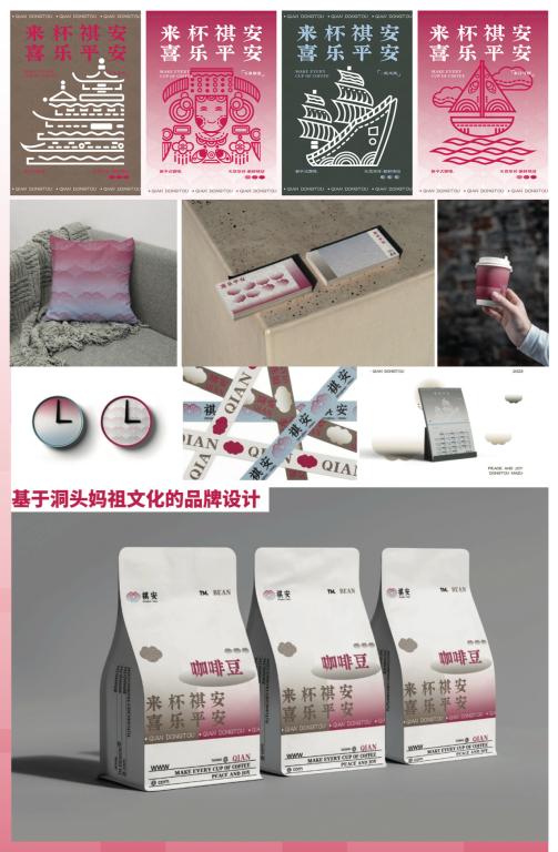 章信同学的《品牌形象设计与价值推广——祺安》是以洞头妈祖信俗文化为依托,以寺庙咖啡文化为载体,使得西方咖啡的潮流与东方道文化产生碰撞,产生强烈反差,激发游客兴趣,从而在实现宣扬洞头妈祖文化的基础上致力于区域第三产业的发展。作品《插画创作及衍生品的应用与研究——新生》,“生命伊始,万物轮回”,赋予故事的意义,从插画设计上叙述一只小水母诞生的故事。作品《梦境归档》将“梦境”这一充满神秘色彩的主题用书籍装帧艺术表现,破除伪装,探索人们那些淹没在“深海”处的想法。