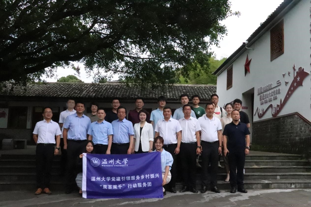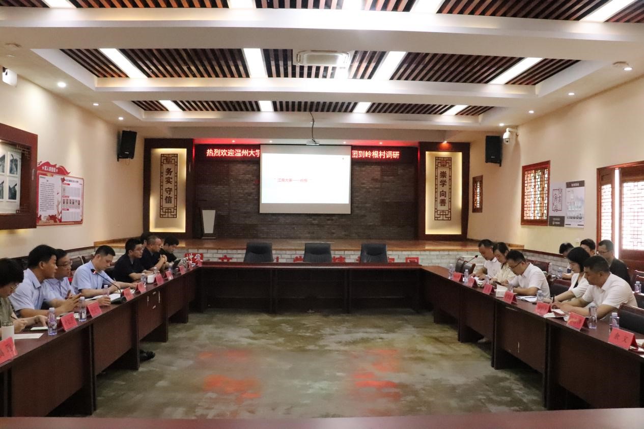 为深入贯彻习近平总书记对浙江“千万工程”的重要指示批示精神,落实中央、省委、市委农村工作会议精神,聚焦温州市党建引领乡村连片提升“六大行动”,促进温州高校助力乡村振兴、助力共同富裕迈上新台阶。6月20日,beat365网页版登录官网副校长蔡曙光带队“双百双千”beat365网页版登录官网服务团赴平阳县鳌江镇岭根村开展项目对接调研,平阳县政府副县长屠霁霞、鳌江镇镇长杨启杰、县委组织部副部长余毅、beat365网页版登录官网机关党委书记组织部副部长李祖祥、beat365网页版登录官网党委书记叶正飞等陪同调研。