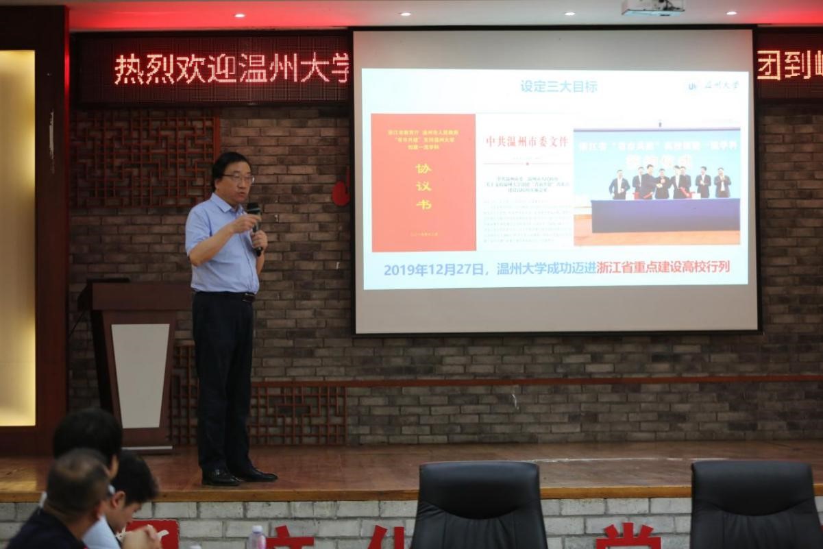 蔡曙光副校长介绍了beat365网页版登录官网办学定位、办学特色和办学成果,并对我校“双百双千”服务团服务平阳深入合作提出三点希望:一是深入对接,主动服务,要进一步发挥学科、人才、创新优势,充分调研,精准项目,主动服务。二是重点打造,引领示范,双方要协力沟通解决具体的难题和问题,共同推进项目合作落地。三是建立机制,确保实效,校地双方要以成果为导向,建立“双百双千”行动工作推进机制,确保取得实实在在的成果。
