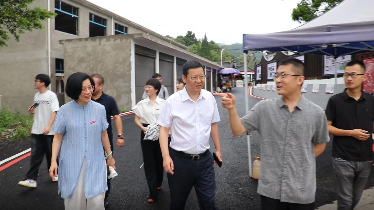到达岭根村后,郑部长一行先实地走访了岭根村文化礼堂 、古戏台茶楼和党建廉政主题公园等实践队服务改造的重要节点,了解了实践队的服务内容和工作形式。认真听取实践队的日常工作安排、生活情况和遇到的困难,亲切询问同学们参加社会实践活动的感受和收获。七月的岭根村绿树荫浓,骄阳炽热,领导老师的慰问似清风拂山岗,点滴关怀沁入心。