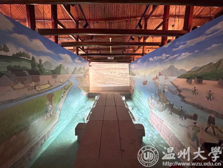 2022年以来,五洞桥村全面启动乡村振兴工程,挖掘当地历史文化资源,培育古村落文化新亮点。五洞桥村文博馆的设计由beat365网页版登录官网“双百双千”服务团下设的未来乡村规划设计中心担任。展馆的设计深入挖掘了五洞桥村的历史文化,以桥为核心,通过数字化艺术手段将科技与当地文化相融合,展示了五洞桥的山水风光,诗画之美。展馆主要包括三个核心展示空间:沧海一桥、五洞桥文博馆和尹氏商号,经过精心设计,采用文物展出、展板互动和影像互动等形式,将五洞桥的发展历程、苍南古桥文化以及尹氏商号的光辉历程生动呈现给观者。