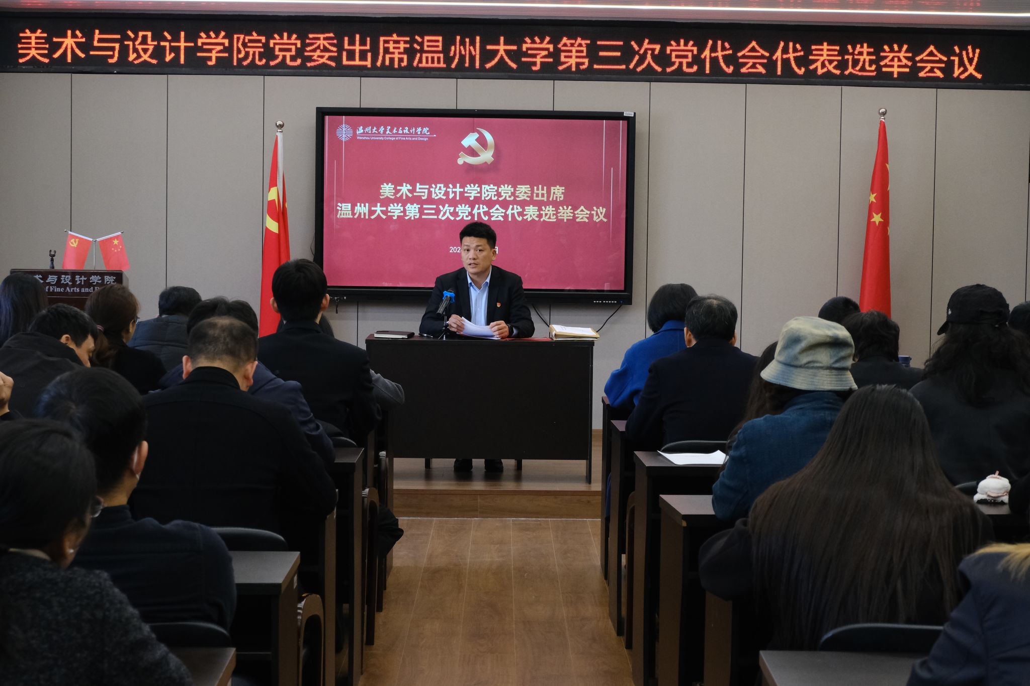为了迎接我校第三届党代会顺利召开,根据校党委有关文件,3月20日下午,beat365网页版登录官网于2B4001举行出席中国共产党beat365网页版登录官网第三次代表大会代表选举会议,学院全体师生正式党员共计117名参加,本次会议由学院党委书记叶正飞主持。大会严格按照《中国共产党章程》、《中国共产党基层组织选举工作条例》的有关规定和《中国共产党beat365网页版登录官网第三次代表大会代表代表产生办法》(温大党委发〔2024〕8号)的要求进行,分别审议通过了《beat365网页版登录官网党委出席中国共产党beat365网页版登录官网第三次代表大会代表选举会议选举办法(草案)》、总监票人、监票人、总计票人名单,宣布计票人名单。叶正飞书记对beat365网页版登录官网党委出席中国共产党beat365网页版登录官网第三次代表大会候选人预备人选的产生过程进行介绍后,全体正式党员按照座位顺序依次进行了无记名投票,通过差额选举的方式进行民主选举。投票环节结束后,在监票人的监督下,计票人进行计票。最终,会议选举产生beat365网页版登录官网党委出席beat365网页版登录官网第三次党员代表大会的5名正式代表。计票期间,全体党员学习观看了全国两会精神相关视频。两会是全国人民十分关注的政治盛会,是与时俱进、民主团结、求实鼓劲的大会。此次会议对于进一步动员和激励全国各族人民全面贯彻落实党的精神和落实“十三五”规划新举措,高举伟大旗帜,继续解放思想,坚持改革开放,推动科学发展,促进社会和谐,夺取全面建设小康社会新胜利,具有十分重要的意义。通过认真学习全国两会精神,大家都为祖国取得的辉煌成就感到自豪,同时对国家未来的发展坚定信心。本次会议各个支部秉持公平、公正、公开的原则,充分体现选举人的意志,党员正确行使民主权利,推进会议圆满举行。全院师生党员表示将以更加务实的态度、更加高昂的斗志、更加澎湃的热情,迎接学校第三次党代会的召开。