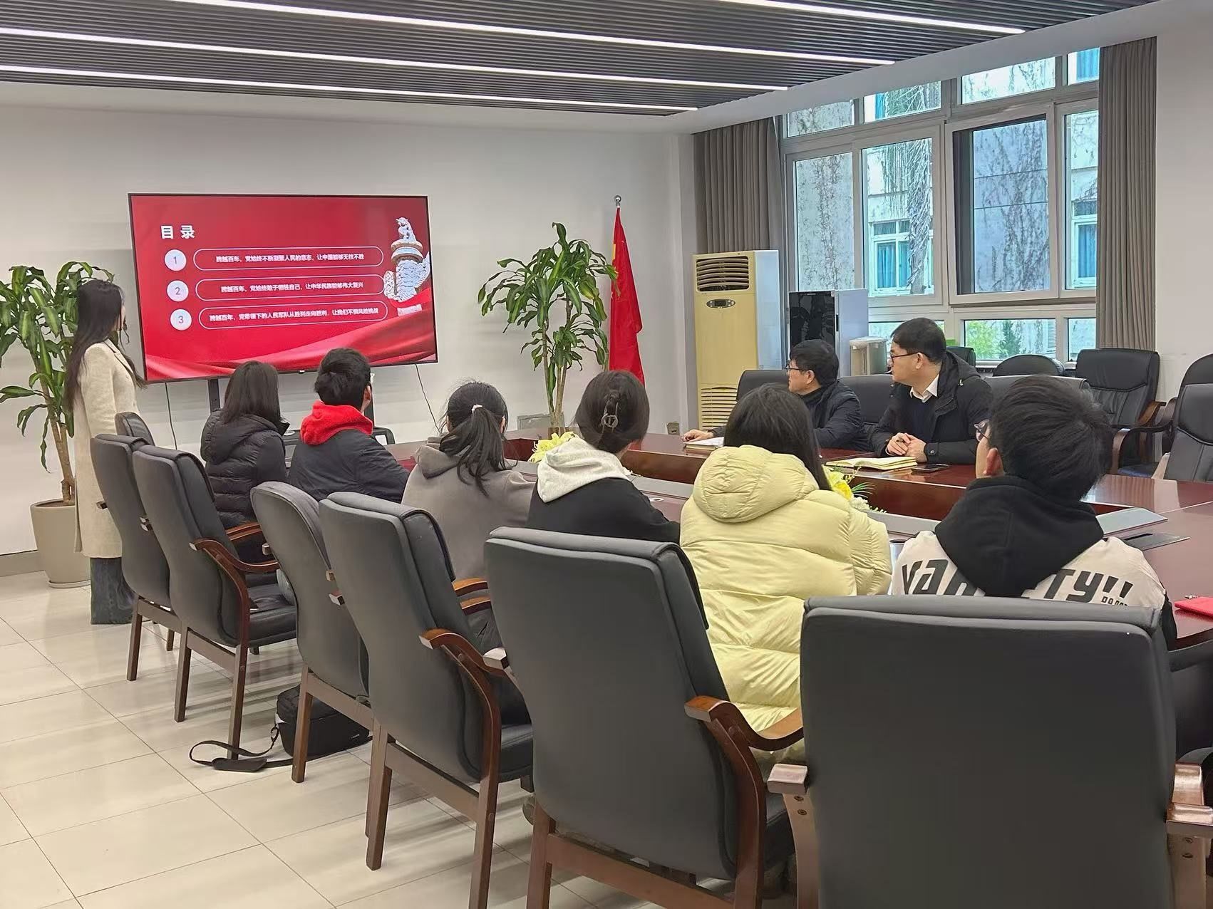 2024年12月31日上午,beat365网页版登录官网学生第二党支部在美术楼2B216会议室开展以“跨越百年,党心永恒”为主题的专题学习会,校党委委员王军作为联系该支部的校领导全程参与指导活动。学院党委书记刘青松、学生第二党支部党员全体参加。活动由支部书记陈嘉怡主持。