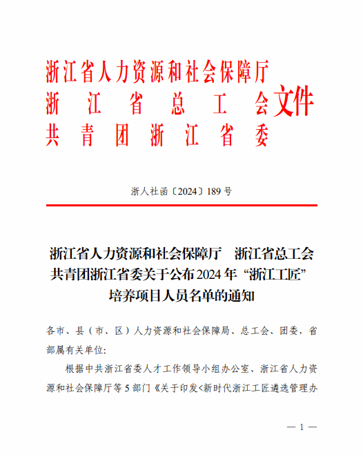 日前,根据浙江省人力资源和社会保障厅2024 年“浙江工匠”培养项目人员名单,beat365官网祝忠良老师名列其中。