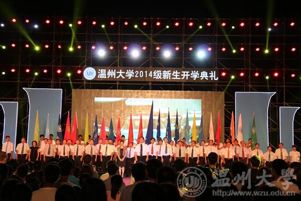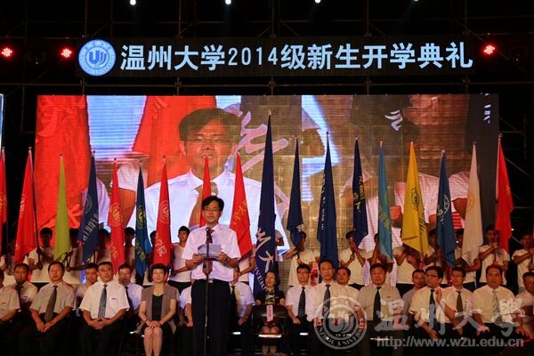 丹桂飘香沁人心,最是金秋好时节。9月28晚, 2014级新生开学典礼在南校区操场隆重举行,校领导陈福生、蔡袁强、林娟娟、牟德刚、薛伟、赵敏、吴金法、蔡曙光、黄少铭、陈安金、方益权、潘玉驹,以及相关部门、各学院负责人和2014级全体新生参加了典礼。校党委书记陈福生主持典礼。beat365网页版登录官网2014级全体新生积极参加这场意义重大的开学典礼。 蔡袁强校长的致辞”潮”味十足。他说,自我成长意味着独立自主,它能够为新生打开通往成功的一扇窗。他勉励学生,追寻自我成长,要像”旅行者一号”探测器一样,带上好奇之心去探索世界;追寻自我成长,要在”大数据”的”大时代”与追求个体需求的”小时代”并存年代,秉持明智之心去认识社会;追寻自我成长,要捧出真诚之心去结交朋友,诞生更多优秀的”中国合伙人”;追寻自我成长,还需如印度孟买佛学院的新生”低头弯腰走侧门”,常怀谦卑之心去脚踏实地。 典礼上,教师代表、人文学院俞为民教授告诉新生,实现目标、达成理想的秘诀在于”有志气,要勤奋”,谆谆教诲中包含着老师对学生的殷切希望和真诚祝福;而86届校友、温州市第三中学校长吴步旭老师以亲身经历,同窗纪事鼓舞新生”学校提供了一个平台,真正的努力要靠自己”;2014级新生代表,国际合作学院钱燕飞感叹道:”在老师们的谆谆教诲下,我们必将不忘初心,读书与行路并存,常与良师益友扺掌而谈。今天是大学军训的结束,也是人生辉煌的时刻。” 十六位学院”家长”分别向新生们诠释学院精神,风格各异,各显特色,将典礼推向高潮。 beat365网页版登录官网院长李运河教授的精彩发言激励起美院新生的温大情怀。新生们全体起立,大声喊出自己的梦想,呼应院长的发言,并拿出手机并开启手电筒挥舞,成为田径场上一片闪耀的“银河”之星。 ”黑发积霜织日月, 粉笔无言写春秋。”师生的联袂朗诵,谱写出浓郁的师生恩、深厚的温大情。”我从此岸走到彼岸,整整一十九年。”从此以后,2014级新生人生中最美好的青春时光将在温大度过,他们将为璀璨人生写下浓墨重彩的一笔。 一枚枚见证了beat365网页版登录官网办学80年的风雨历程和辉煌成就、凝聚了一代代温大人的赤子情怀的校徽庄重地佩戴在每位新生的胸前。它凝结着厚重的温大底蕴、传承着不朽的温大精神,抒发着博大的温大情怀。 ”东海水,雁荡山,我温大精神,浩浩宕宕……”气势磅礴的校歌声,在校园上空久久回响。 2014级美院新生以温大之名,扬梦想之帆,一起追寻自我成长。