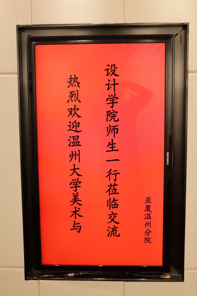 4月25日下午13点30分,beat365网页版登录官网蔡设计系主任朱广宇教授和13级研究生、11级环艺专业全体学生在温州亚厦设计研究院做了“项目进课堂”教学课程汇报。出席此次活动的有亚厦设计研究院的胡逸院长,吴焱伟副院长以及朱心怡主任,beat365网页版登录官网蔡可群副院长及教学科邹青老师。