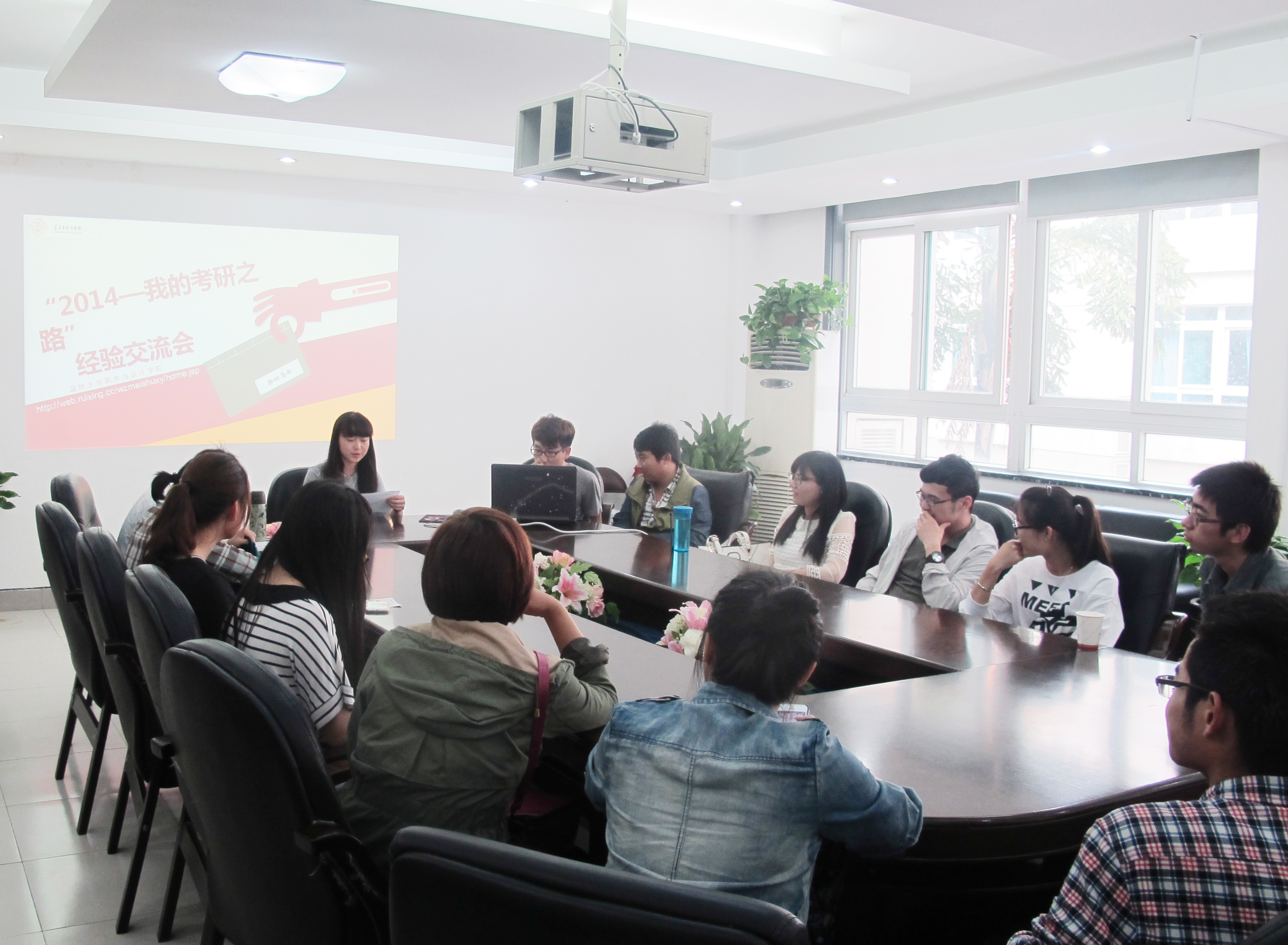 5月14日下午,由beat365官网团委学生会学术科技部主办的“2014梦想的延续——我的考研之路经验交流会””在2B-216顺利举行。学生科副科长叶如芳、辅导员杜茜老师和10级考研录取的同学出席了此次活动。