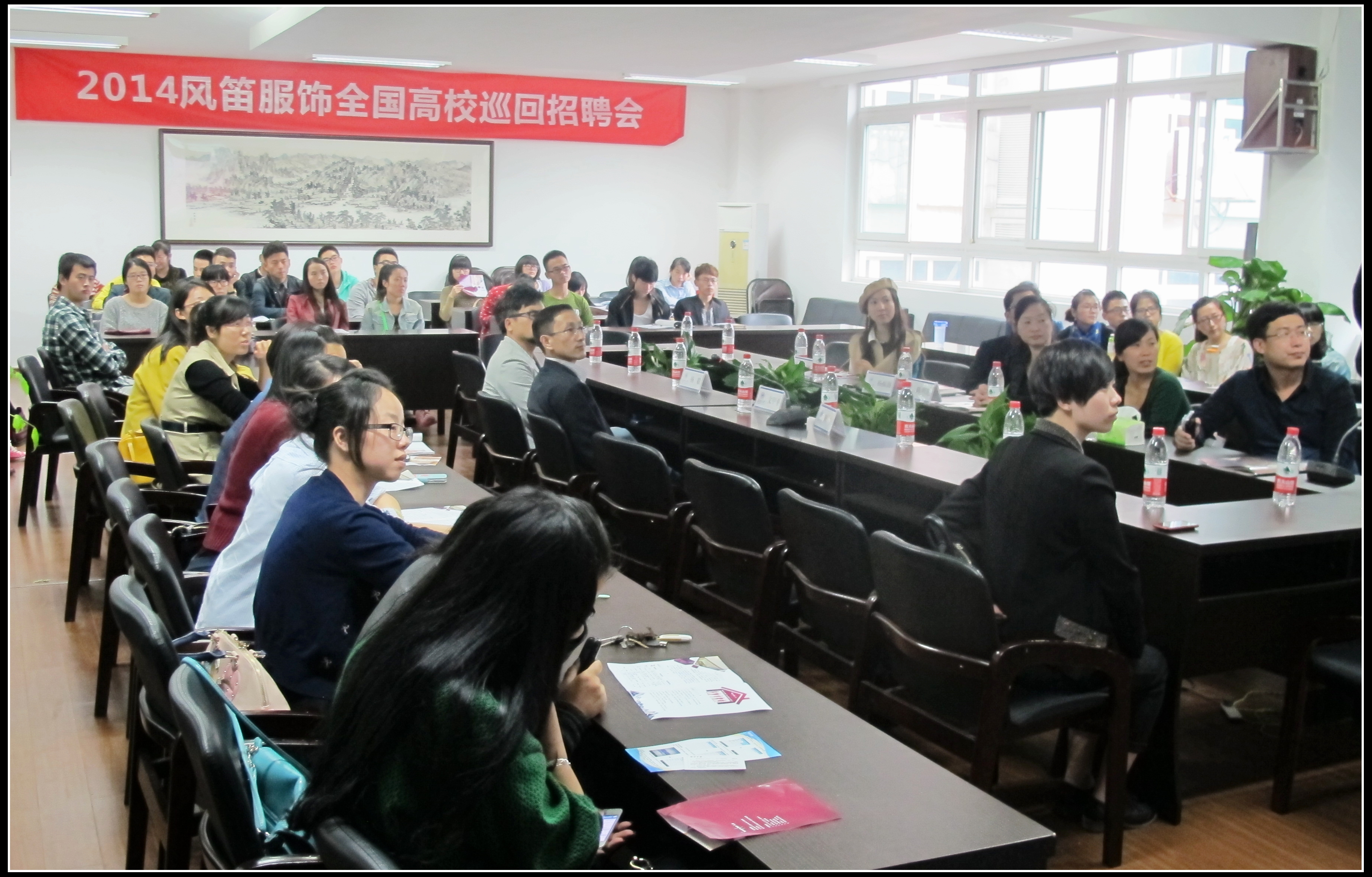 随后,一段简练而精彩的宣传片展现了风笛的形象、文化与成绩。风笛”企业培训部陈宁经理开始了主题为“赢在起点,职业梦起航”的宣讲,他为同学们介绍了企业的宗旨、使命、愿景、理念以及福利、工作环境。紧接着美院12届毕业生,童装部设计师林若心上台发言,她与学弟学妹们分享了自己的求职经历与工作历程,鼓励同学们鼓足信心,勇敢地走向就业这一人生转折点。