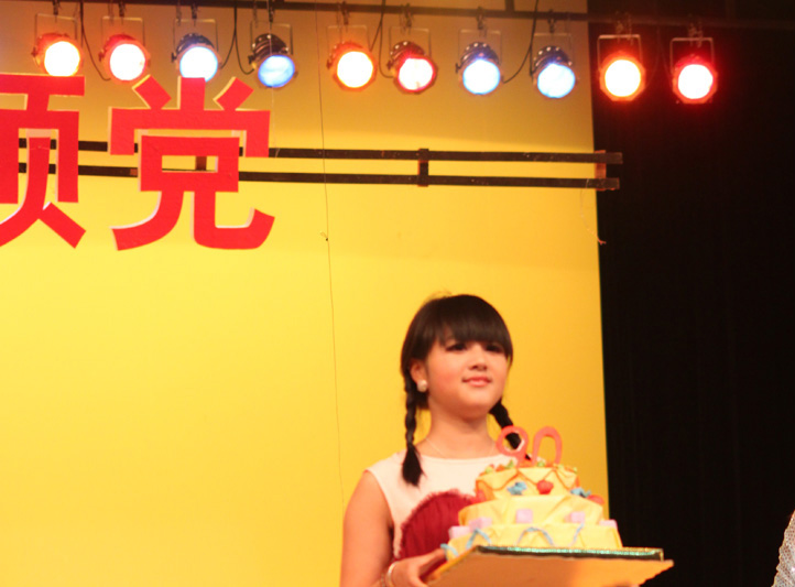 beat365官网的朗诵节目《点燃90支蜡烛——祝党生日快乐》集合了20多位青春靓丽的大学生亮相舞台。节目开始描述一群豪情迈丈、英勇牺牲的革命烈士,随后以4人领颂和20余人群颂的形式向观众们展示,而且不光仅仅是朗诵更融入了美院的特色——书法,作为党90周年的生日礼物。节目最后还穿插有献上生日蛋糕的环节,在《生日快乐》歌声中落下帷幕,博得现场的阵阵掌声。