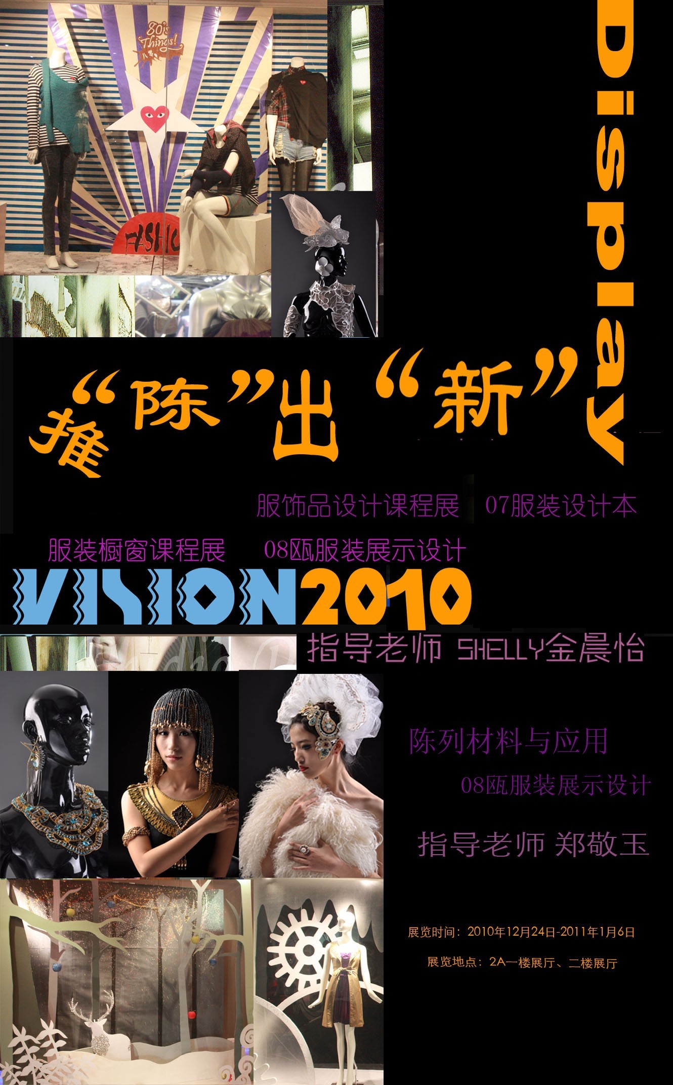 beat365网页版登录官网于2010年10月24日-2011年1月6日在2A二楼展厅举行07服装设计班和08瓯展示设计班推“陈”出“新”课程作品联展。此次课程联展由金晨怡老师的《服装橱窗设计》,郑敬玉老师的《陈列材料与应用》以及金晨怡老师的《服饰品设计》课程组成。以2010的圣诞作为主题,课程运用艺术手法触动着美的感受,更是启发学生商业设计思维的根本。beat365网页版登录官网党总支书记郑彩莲,beat365网页版登录官网院长李运河、服装系副系主任张振岳、各学校科室以及来自其他院系的师生共一百余人参加了本次活动。 beat365网页版登录官网院长李运河在观看展览时说:“这是续去年开始的创新争优活动的特色活动课程联展的又一次精彩的升华。学生作品题材丰富,在这些作品中也体现了老师教学方式的灵活多样,设计思想的无拘无束及同学们较强的动手能力。使beat365官网展示设计专业方向在专业交流与实际应用方面上升到一个更高层面。”课程展本着“给学生创造展示自己的平台,加强实践环节的教学,激发学习兴趣”这一宗旨,在金晨怡老师和郑敬玉的精心指导下给大家带来一场视觉盛宴,也是同学对指导老师教学成果的一次汇报。推“陈”出“新”的意思是突破创新的设计理念,利用独有的陈列装饰和商品展示技巧,让商品在道具、辅助商品、装饰品及灯光的衬托下闪亮登场,从而使商品由呆板变得鲜活,将商品优势最大程度展示出来,达到促进产品销售、提升品牌形象的目的。也通过陈列展览这个平台来推销自己的设计作品。 推“陈”出“新”是学生对服装展示专业方向的激情与热爱,对课程的学习体验,也是学生们用心去打造的创新陈列视觉效果。通过作品展览既可强化学生的社会适应能力和实际动手能力,培养商业化的思考习惯与创新意识的体现;另一方面加强交流与展示学生风采,向社会推荐我们优秀的学生和作品,提高了社会影响力和就业率。 据了解,此次展览特色在于在教学上着重与市场的紧密结合。此次展览邀请了嫁依工坊设计总监胡亚迪,3W摄影董事兼设计总监王雁和市服装商会设计师专业委员会秘书长曾贵等来自企业的专家对学生作品进行点评。浙江婉甸服饰董事长蒋海、浙江飘蕾服饰董事长黄瑞东、浙江雪歌服饰公司董事长助理熊伟对作品给于了高度的评价。另一亮点是此次学生们的橱窗设计作品已经被时代购物广场童装区和银泰百货所运用,3W摄影董事兼设计总监王雁马上相中了学生徐晨大胆而富有时尚的“僵尸新娘”主题的橱窗。此次展览后导师带领学生与时代广场和3W摄影签订了横向课题,为他们定期设计制作橱窗。