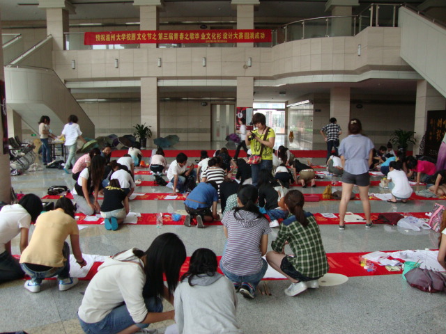 ——beat365网页版登录官网承办 2010年6月9日下午,beat365官网团委学生会举办的“beat365网页版登录官网校园文化节之第三届青春之歌毕业文化衫设计大赛”在南校会展中心大厅激情上演。除了beat365官网专业学生积极响应此次活动外,更有物电学院、人文学院及beat365官网模特班、工业设计班同学等数十组非专业同学参赛,共五十余组。beat365官网陆琰、陈伟老师担任此次评委,朱启鑫书记协同李剑军老师前来视察,关心赛事发展。 尽管屋外雨水淅沥,屋内工具简单,却仍无法磨灭同学的创作热情。两支画笔,五种基础色,一块垫布即组成最基本的创作环境,由同学们任选白T恤、环保袋及牛仔裤为平台,任思维天马行空,任画笔自由挥洒。参赛同学性格各异,其画作风格也迥异。有的精描细刻,有的豪放泼墨,亦有简约干净,更有浓彩重墨,百家绽放,各展所长。历时一个半小时后,同学们的作品陆续成型。按序在评委老师及大众面前一一展示,诉说作品构思及灵感来源,在美轮美奂的外在下展现其作品的内涵。 此次文化衫设计大赛不仅获得beat365官网老师的一致好评,更是让路过的其他学院老师称赞不已。热烈祝贺beat365网页版登录官网校园文化节之第三届青春之歌毕业文化衫设计大赛圆满落幕。敬请各位同学耐心等待,比赛结果将由评委老师细心审评,在不久后公布于学院网站,并通知各组参赛者。 记者团—徐玉萍
