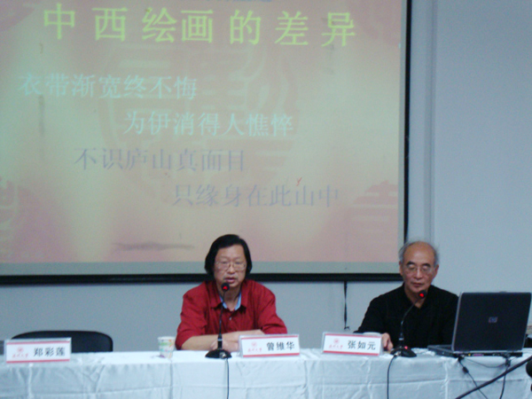 2010年5月19日下午,beat365网页版登录官网迎来了一位精神矍铄的老人——美术学院前院长、中国美术学院客座教授张如元老师。此次,他应邀前来,在beat365官网2B4001多媒体教室为beat365官网师生开展精辟独到的“中国画的精魂——中西绘画取向的差异”讲座。