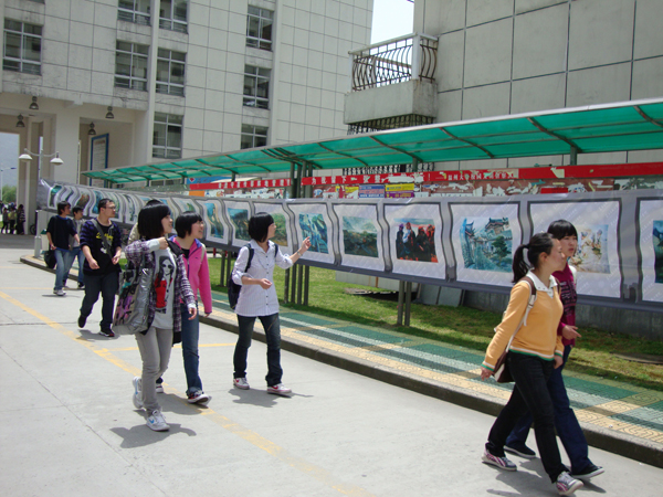 2010年4月28日对同学们来说是再普通不过的日子,与往常一样的早起赶上课、下课冲食堂。然而今天,许多同学却停下了匆匆的脚步,被一些创意独特的鞋靴、服饰等吸引,纷纷驻足在温大生活区A区,欣赏由温大beat365网页版登录官网主办的“艺术漂流”巡回展览。 明媚的阳光中带着焦灼,照射到展品上却犹如闪烁的镁光灯,告诉你:看这里。看这里!对!看的就是这里!无论是色彩缤纷的裙装、英气高贵的宫廷装、纯白的立体裁剪作品,或是结构严谨的环境艺术建筑模型、无限延展空间的立体构成作品都找到了自己的大批拥护者。而创意鞋靴设计作品更是打破人们的常规思维局限,使人眼前一亮。更有荣获全国鞋靴铜奖的“战国策”震撼全场。沿着展区向前走,入目的是整棚的速写作品。此时终于领悟,没有色彩的世界,纯粹的黑灰白也能无限生动,给你难以言喻的感动。再进去就是长长的艺术走廊。道路两旁挂满了数百幅师生作品。国画、书法以及篆刻了展示国粹的精华,引得参展的外国友人赞叹不已。浓彩重墨的油画、水彩自然是最受欢迎的,版画与木雕用其独一无二的形也争得个不相上下。共同点缀着艺术走廊,缺一不可。 “让美丽悄然流淌,让艺术华丽绽放。”此次艺术漂流第二站活动在学院老师大力支持下于美院大本营闪亮登场,并吸取第一站的经验与教训,可谓圆满成功,不仅为前来参观的师生上演一场饕餮盛宴,更获得院领导的一致肯定。 在此预祝艺术漂流在此后的几站中亦能举办顺利。