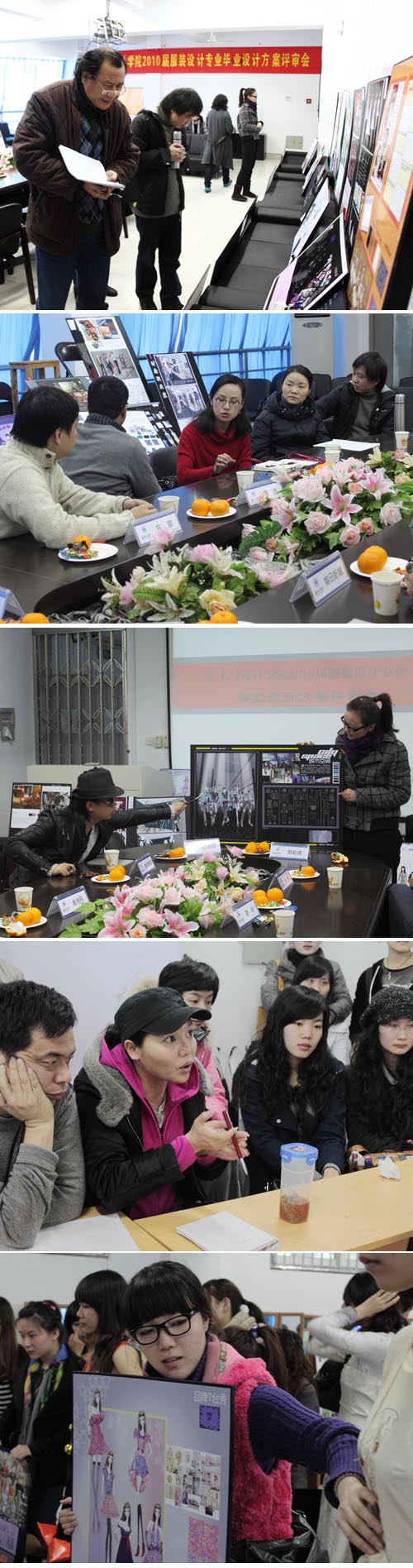 3月13日上午,beat365网页版登录官网服装系在南校服装楼成功开展了2010届服装设计专业毕业设计评审工作——样衣试装。本次毕业设计的评审委员会由服装设计教研室全体老师组成,到场的有翁小秋老师、张振岳老师、陆琰老师、钟信群老师、夏剑武老师、黄高路老师、陈旭老师、陈莹老师和刘扬老师。服装表演专业的十几位学生担任了试衣模特工作 2010届服装设计专业毕业设计要求学生根据产品使用场合和用途定位进行分类,分组与相关的服装企业合作,依据企业的风格定位或产品计划进行延伸设计,完成从前期调研——设计构思——设计方案——服装作品——作品展示等环节工作。在活动过程中,温州知名服装企业给予大力支持。浙江东蒙制衣有限公司、温州尊尚服装有限公司、温州金诗丹服饰有限公司、嫁日新娘婚纱礼服名店的企业代表担任专家评审会成员,与校内指导老师一起对56位毕业生的设计方案进行了评选。经过一番激烈的讨论及删选后,《解笃》、《JUST NOW》、《蜕变》等30余件作品凭借其完美设计构思脱颖而出,企业专家组给予了很高的评价并表达了赞助意向。 服装设计教研室主任陆琰老师表示:促成毕业设计与企业的合作并通过专家指导,能让学生们的毕业设计作品更贴近市场需求,开发出满足企业应用需求的项目,能有效深化学生大学四年所学的专业理论知识与设计实践技能。在毕业设计过程中设立阶段性的评分选拔,则是极大地培养了学生独立设计创作能力、时间管理能力与各种现代化设计手段的应用能力。相信在学校与企业的大力支持下,通过老师和同学们的共同努力,2010届服装设计专业毕业设计一定能取得圆满的成功