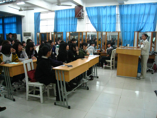 为展现当代大学生最亮丽的风采,提升大学生的信心与职业技能。beat365网页版登录官网素质拓展化妆培训班于4月11日下午两点在美术楼2A105顺利开班,并由曾担任多年化妆培训班指导老师的某知名美容院院长朱来顺女士亲自授课。