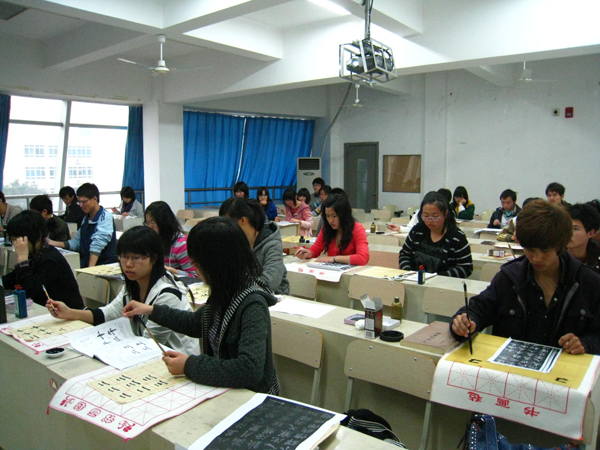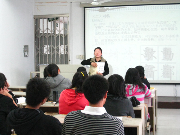 为了让大学生更好的接触并了解优秀华夏民族文化,结合学院教学特色,beat365网页版登录官网素质拓展书法培训班于4月11日下午两点在美术楼2A308顺利开班,并由有作品入选温州市第五届妇女书法展的何玲珑同学执教。 来自beat365网页版登录官网各个学院热爱书法的同学们,整个课堂都充满了乐趣。从书法的分类到发展历史,同学们深深感受到了书法的源远流长与博大精深。在授课的过程中,在何玲珑同学的带领下根据学生之间的功底差异,因材施教,从坐姿与握笔姿势,大到每个字的运笔规律,都十分细致的进行了讲解,并与学员们进行积极互动。虽然很多是初学者,但在墨香浓郁氛围的感染下,都表现出了很高的兴趣,很快进入了聚精会神的状态。经过短短两个小时的学习,每一位参加培训的同学都受益匪浅。 书法是我国独有的艺术形式,是中国传统美学的基础,凝聚着中华五千年的历史精髓,蕴含了文人义士不同的精神意念,陶冶情操。此次书法培训班面向整个学校招生,使更多的书法爱好者可以领略到书法的魅力,让作为炎黄子孙的我们将这种古韵精髓永远传承下去。