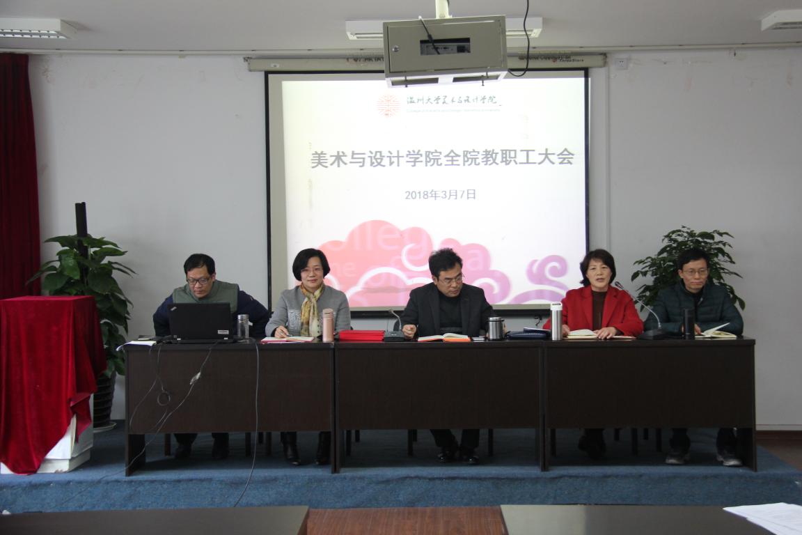 2018年3月7日下午,beat365网页版登录官网在2B4001多功能厅召开新学期第一次全院教职工大会。学院领导班子及全体教职工参加了此次会议,会议由党总支书记张丽萍主持。 大会上首先举行了“2017年度院长特别奖”的颁奖仪式。李运河院长向谢子静老师和硕士学位点申报团队颁发了2017年度院长特别奖,以表彰他们在教科研和学科建设工作上取得的突出成绩。谢子静老师主持的《古戏台戏曲彩绘图饰研究》获国家社科基金项目艺术学课题;李运河院长所率的申报团队获得设计学学术硕士授予权和艺术专业硕士授予权,这是beat365官网硕士点申报工作取得的重大突破。 会上,beat365官网各领导就本学期工作思路、要点及近期工作安排做了布置。李运河院长充分肯定了beat365官网去年取得的阶段成绩,并对去年的工作及考核情况做了简要回顾。2017“市长杯”工业设计大赛在去年12月圆满落幕,我校的承办工作受到了张耕市长的肯定,这是beat365官网去年完成的一件大事,但还要善始善终,后续收尾工作要在本学期初完成。开学初全校教职工大会上beat365官网成果大丰收,受到了表彰。这些荣誉的获得是对beat365官网去年各方面工作成绩的肯定也是和全院教职工的努力分不开的,希望大家在新的一年里再接再厉磨砺前行。本学期,beat365官网有几个方面的工作要推进:一是设计学和艺术硕士这两个学位点拿到后如何建设好的问题。要走共性加个性、规范加特色、与本地产业结合之路。二是本科教育要继续深化产教融合,三是要把美术师范的品牌做大做强再度提升。此外本学期还要做好服装工程设计专业认证工作。 张丽萍书记表示,beat365官网在今年的全校教职工大会上获得了8个奖项这是非常鼓舞人心的成果,创学院历史之最。我们获得了 “2017年度beat365网页版登录官网校长特别奖”、“beat365网页版登录官网2017年度教学工作考核优胜单位”、“beat365网页版登录官网2017年度学科、科研工作考核进步单位”奖,beat365官网的美术学专业获“最具就业竞争力专业创业单项奖”、服装设计与工程专业获“最具职业发展竞争力专业综合奖”。同时,胡建南老师和顾任飞老师还获得了2017年度优秀教师和优秀党务工作者的称号,韩阳老师获2017年度步青优秀教学奖,实属难得。特别是胡老师兢兢业业尽职尽责为师范生的培养做出了很大贡献。之后,张书记还就本学期党总支工作做了部署。 随后,副院长谢子静、张晓剑,副书记杨振海也分别对各自分管工作做详细部署和安排。 (文 冀千里/ 图 李雪涛)