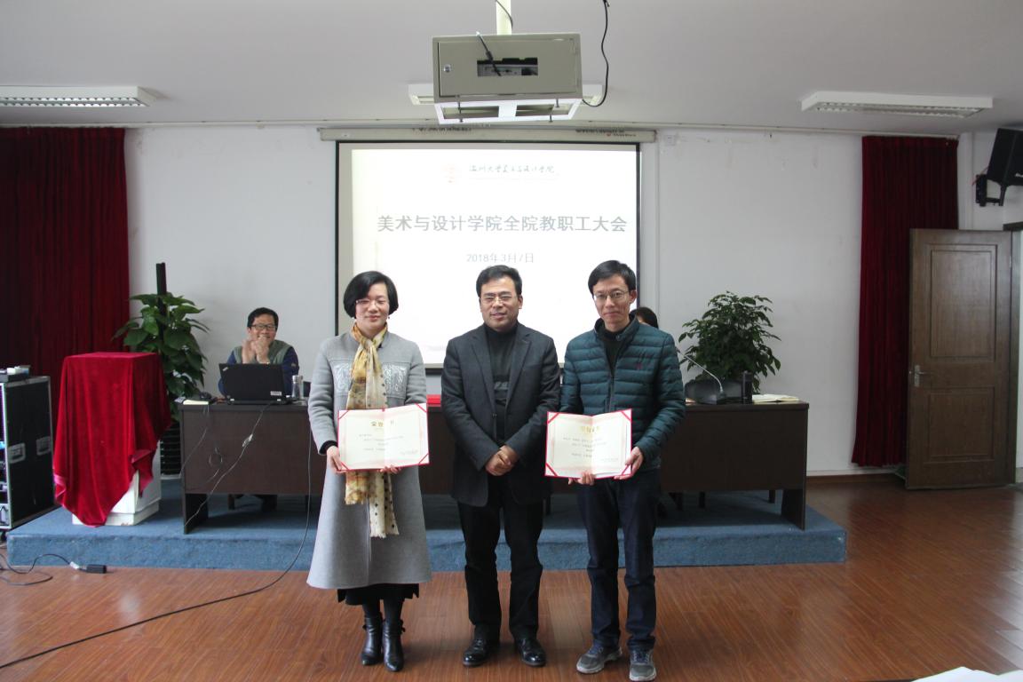 大会上首先举行了“2017年度院长特别奖”的颁奖仪式。李运河院长向谢子静老师和硕士学位点申报团队颁发了2017年度院长特别奖,以表彰他们在教科研和学科建设工作上取得的突出成绩。谢子静老师主持的《古戏台戏曲彩绘图饰研究》获国家社科基金项目艺术学课题;李运河院长所率的申报团队获得设计学学术硕士授予权和艺术专业硕士授予权,这是beat365官网硕士点申报工作取得的重大突破。