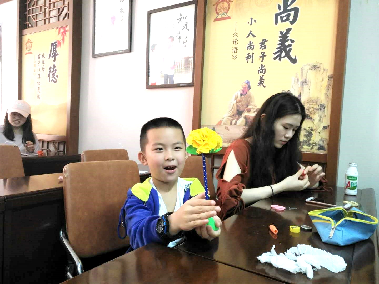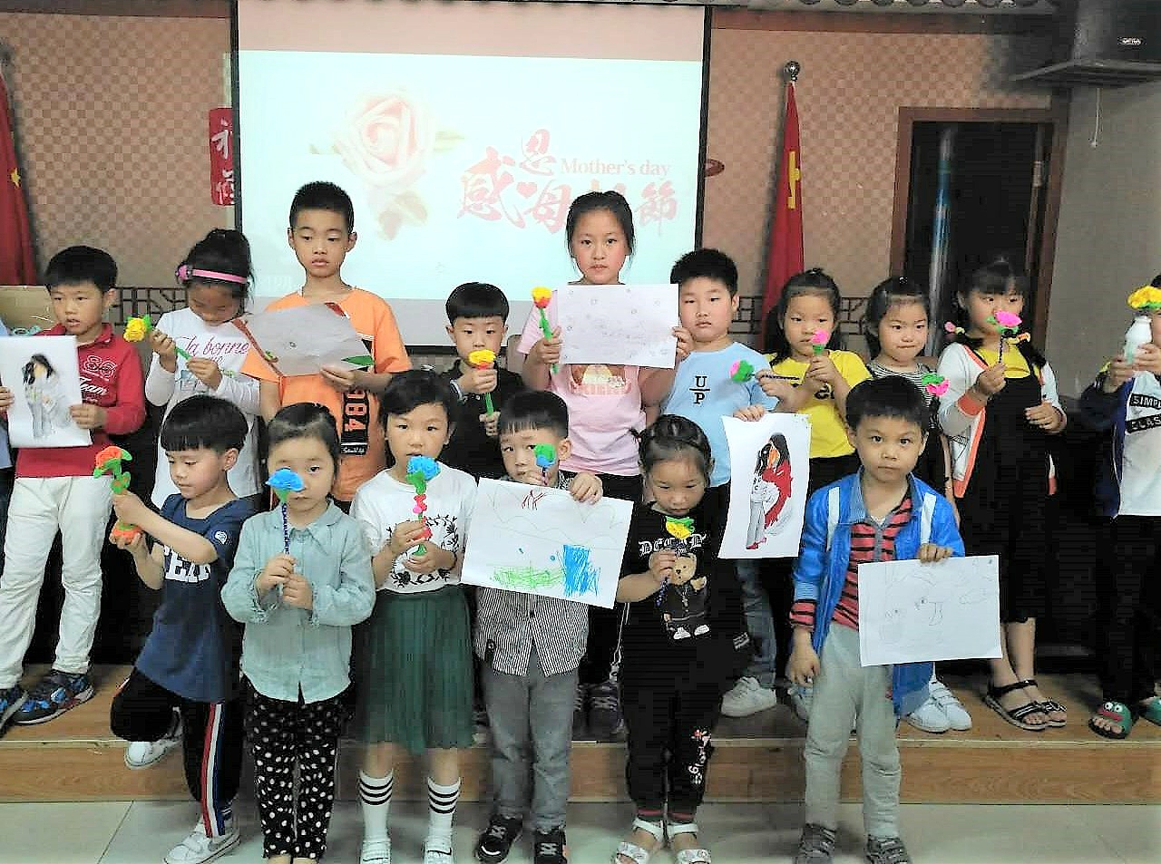 此次活动内容主要是用橡皮泥制作康乃馨,将亲手制作好的花送给自己的母亲,给辛苦操劳的母亲一个惊喜。把一块块橡皮泥,捏成花的样子,有红的有蓝的……娇艳欲滴。活动过程中小朋友和志愿者们捏的不亦乐乎,相互比拼着彼此的花朵,炫耀着自己的成果,再加上后来橡皮泥的上色,显得“花朵”更加鲜艳,像是有了香味一样。经过一系列的修改,手上的花朵越来越精致,同时选出了前十名分发了奖品,没有得到名次的的小朋友也奖励了纪念品。