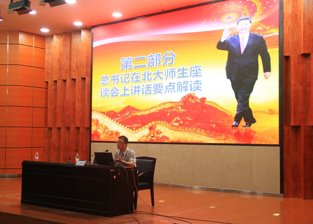 7月4日下午,beat365网页版登录官网在岩松堂雁山厅组织开展形势与政策课教学,学院党总支副书记杨振海为17级全体同学做“坚持立德树人培养时代青年 加快内涵发展建设高教强国——习近平总书记在北大师生座谈会上的讲话精神解读”报告。 杨书记报告分为三部分,第一部分是总书记莅临北京大学考察的简要回顾,第二部分是总书记在北大师生座谈会上讲话的要点解读,第三部分是学习总书记讲话精神要自觉增强五个自觉。杨书记指出,习近平总书记在北大师生座谈会上的讲话是当的十九大以来,总书记面向高等教育乃至整个教育战线发表的首次重要讲话,对新时代的高等教育工作做出了系统论述,具有很强的战略性、政治性、思想性和针对性,是习近平新时代中国特色社会主义思想的重要内容,是深化教育综合改革、办好社会主义大学的根本遵循,也是青年学生成长成才的行动指南。杨书记认为,总书记的讲话围绕“我们要培养什么样的人”“怎样培养我们需要的人”“青少年怎样成为这样的人”三个问题,分别从我国高等教育的一个根本任务、建设中国特色世界一流大学的三项基础性工作和对新时代青年的四点希望三个方面进行了深刻阐述。杨书记总结了学习总书记讲话精神要增强五个自觉,一要增强走中国特色社会主义道路的自觉;二要增强加快高等教育内涵式发展的自觉;三要增强高等教育服务国家和社会的自觉;四要增强高校加强和改进党的领导的自觉;五要增强青年大学生全面成长成才的自觉。 最后,杨书记勉励全体同学要不忘初心,牢记使命,关注时事政治,努力充实文化知识和专业技能,为实现中华民族伟大复兴的中国梦贡献青年大学生应有的力量。