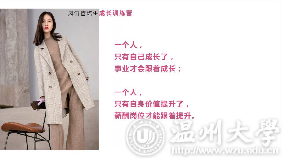 “不忘初心,使命必达。”风笛宣讲人缪老师在分享风笛创始人创业史、发展史,讲述风笛的过去、现在与未来,同学们都听的津津有味。宣讲会在主持人和同学们的互动中开始后,主持人分别从公司品牌设计风格,员工的衣食住行娱,薪资问题和管培生培养计划等几个同学们关心的方面来介绍风笛服饰有限公司的细节。BAGPIPE风笛成立于1999年,是一家自主开发、生产、销售时尚女装和童装的品牌经营企业。风笛公司的女装品牌分为周末时尚,摩登帅气,精致优雅三个风格,而风笛公司的童装品牌的定位则是针对2-8周岁的儿童设计的,风格多样是风笛公司的优势所在。衣食住行方面,风笛公司也非常重视员工的感受,为他们提供了舒适的环境以便于员工们更好的工作和生活。同时,风笛公司也十分重视对人才的培养,也有一套完整的体系进行人才的引入。这便是风笛管培生培养计划的由来。对于进入风笛上班的应届生,风笛建立了完善的“管培生培养计划”,全面打造“一专多能”的复合型人才,让每个进入风笛的应届生迅速成长,成为独当一面的技术或管理人才。在经过由系统培训、店铺见习、核心轮岗和专岗实践四个环节的管培生培养计划之后,实习生便能更好地融入公司这个大集体。说到薪资方面的话题,风笛公司的PPT上有着这样一段话:“一个人,只有自己成长了,事业才会跟着成长。一个人,只有自身价值提升了,薪资岗位才能跟着提升。”从这段话中我们也可以清晰地看到风笛公司对人才和员工能力的重视。对于服装设计、服装展示、广告设计、面料纺织类的专业,风笛公司也提供了如设计助理、陈列师助理、平面设计助理、面料跟单、理化检测的专业让同学们选择,以便给予同学们更大的就业空间。