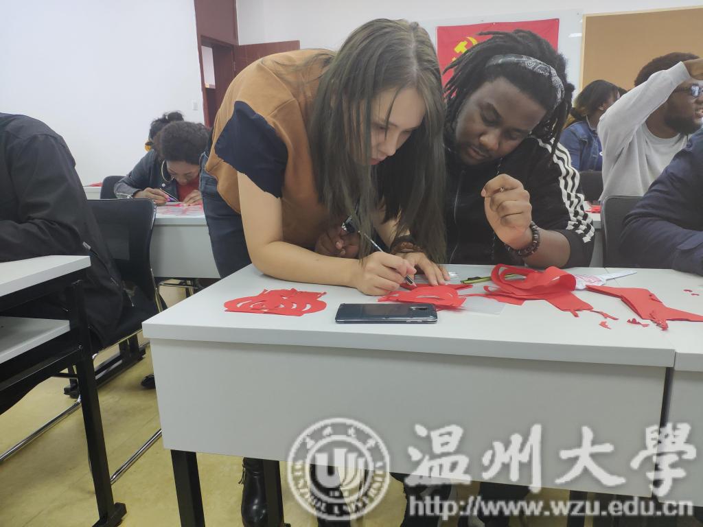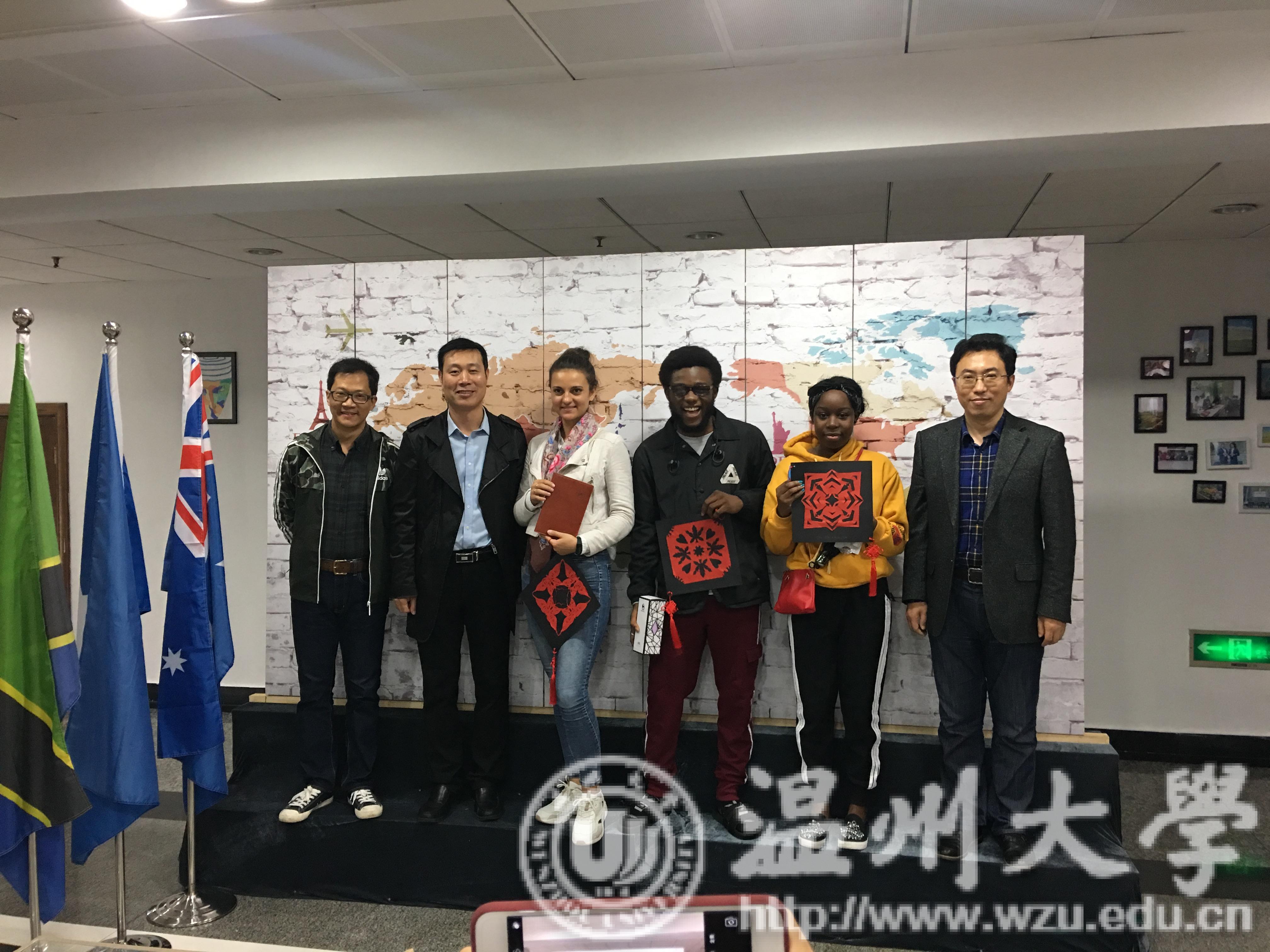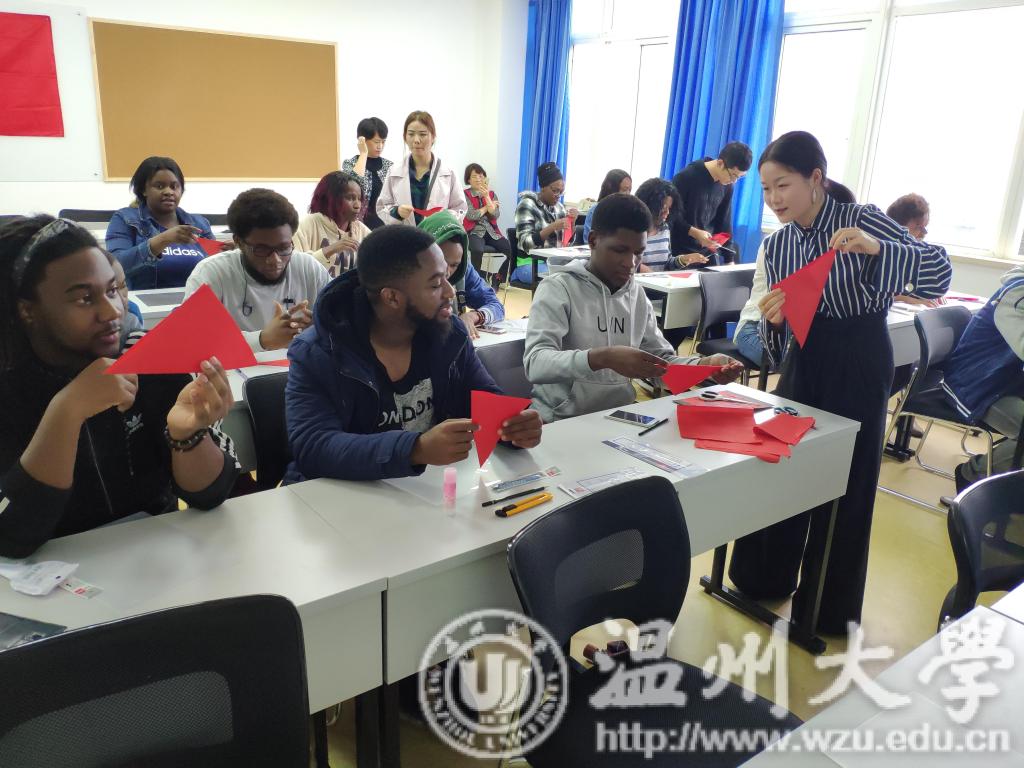 为了传承并发扬中国传统文化,丰富留学生校园文化生活,2018年10月22日下午,beat365网页版登录官网结合自身特色,与beat365网页版登录官网商学院合作,一同在北校国际楼开展了以中外剪纸文化交流为主题的活动。出席本次活动的领导有beat365网页版登录官网党总支副书记杨振海、商学院党总支副书记刘开练、商学院国际部主任王洪斌以及商学院教师吴海蓉。 活动的开始,商学院的吴老师首先向留学生们介绍了本次活动的目的与意义,介绍前来开展活动的美院研究生代表们,同时也对在场的留学生们的积极性表示了充分肯定,尤其是第一次参与学院举办的课外活动的18级新生。老师提到,希望同学们能够好好表现,争取在此次剪纸活动中有所收获,了解剪纸艺术。 此次,带领留学生们剪纸活动由beat365网页版登录官网研究生党支部主教。美院研究生代表徐苗苗为大家讲解了中华剪纸文化的历史内涵,介绍了剪纸中“福”和“寿”的具体意义,以及藏在火红的剪纸图画背后的中国老百姓们对生活的美好向往。生动的解说让留学生们沉迷其中,同时留学生们也忍不住赞叹中国传统文化的博大精深。接下来是动手环节,留学生们在美院研究生的带领和指导下,按剪纸的基础步骤一步步进行,每个人还积极思考,发散思维,加上了自己对剪纸的理解,进行了图案的设计与创作。留学生们完成了一幅幅形象生动的剪纸作品,同时也提高了动手能力,初步学习了中国传统艺术之剪纸。 活动的最后,美院研究生代表选出了留学生剪纸作品的一二三等奖,美院的研究生和留学生一同在领导老师带领下,参观商学院一楼新落成的留学生活动中心,颁发奖品并合影留念。留学生们脸上洋溢的笑容,展示着他们对中国文化体验交流活动的浓厚兴趣与快乐。希望美院的研究生和商学院多多交流,希望中华传统文化能一直传承下去。