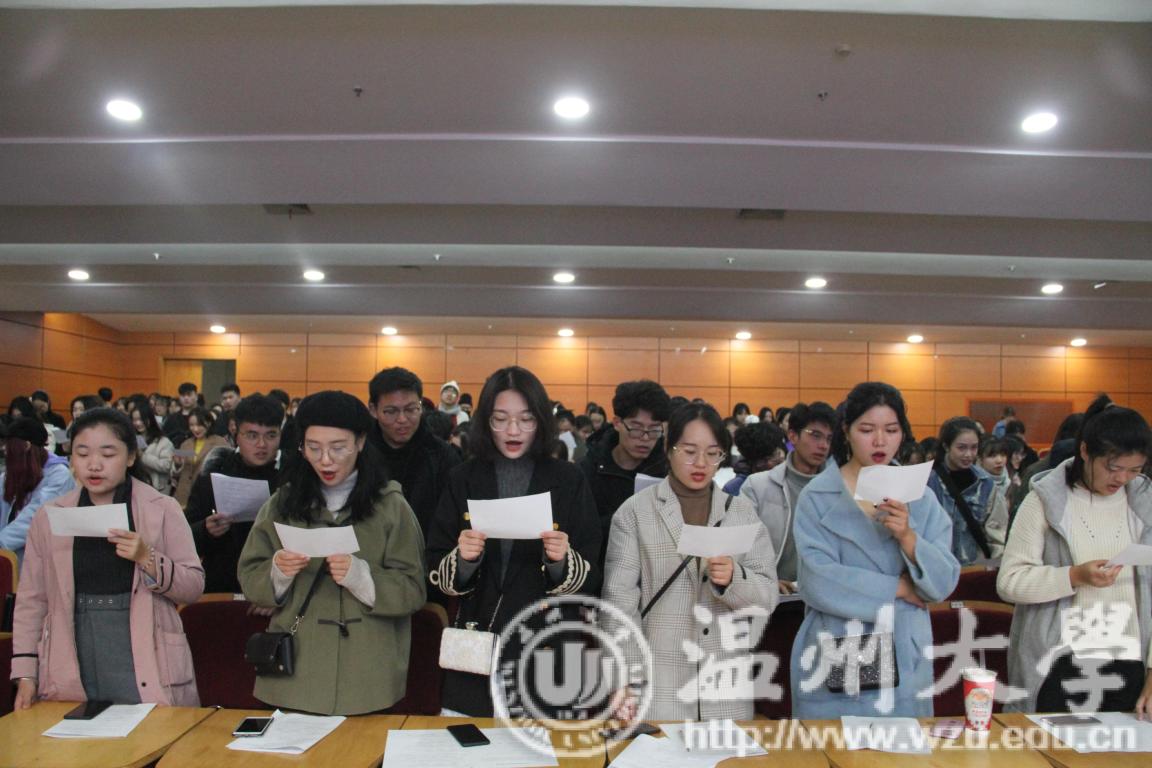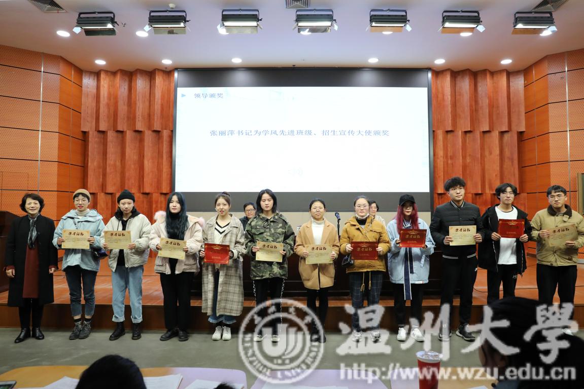 12月26日下午,beat365网页版登录官网2018-2019学年第一学期期末考风动员大会在雁山厅举行。参加本次会议的有beat365网页版登录官网党总支书记张丽萍老师、beat365网页版登录官网副院长谢子静老师、beat365网页版登录官网党总支副书记杨振海老师,还有17级和18级部分班级的同学。 大会之初由学生科李雪涛老师汇报本学期学风考勤情况。李老师以年度数据、迟到数据、旷课数据、晚自习数据全面总结了本学期美院考风考勤情况。紧接会议进行第二项议程学风表彰。由学风纪检部部长宣读本学期优秀纪检委员、学风先进个人以及班级名单。接着,学生会主席陈晨宣读本学期招生宣传优秀宣传大使、艺术团优秀团员表彰决定。院领导为获奖同学颁奖以示鼓励。随后由全体学生宣读《诚信考试承诺书》并签字承诺。 会议进行最后一项议程,由杨振海副书记作考风动员讲话,老师再三强调考风考纪的重要性。并为同学讲解到如有作弊学校对其处理的严重性,不仅仅是同学想象的那样简单会影响其一生。最后杨振海副书记对同学们进行了积极鼓励,相信大家都能成为一名诚实守信的大学生。 本次大会肯定了该学期各班同学的努力成果,强调了临近期末的考风纪律,为同学们建立优良的学风考风起了积极引导作用。相信在我们的共同努力下美院的学风考风建设将会越来越好。
