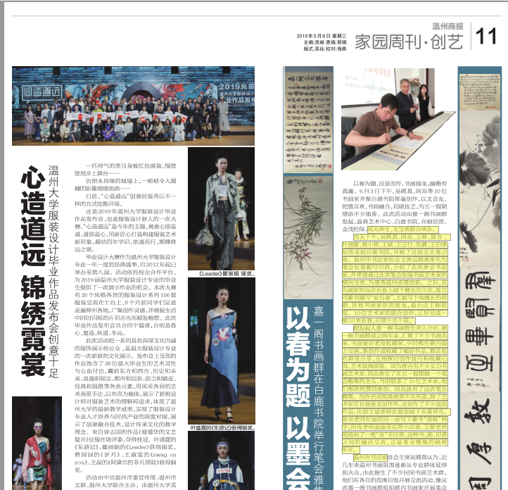 活动由中共温州市委宣传部、温州市文联、beat365网页版登录官网联合主办。由beat365网页版登录官网、浙江风笛服饰有限公司、温州时尚学院合作承办。商报记者郑丽娟