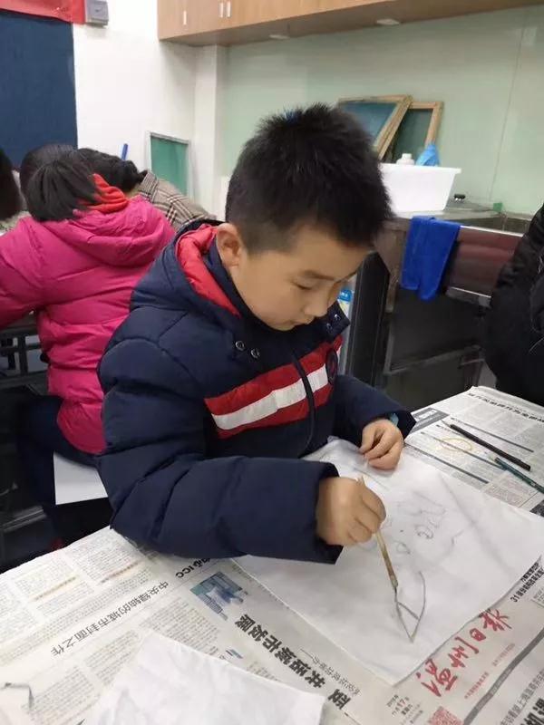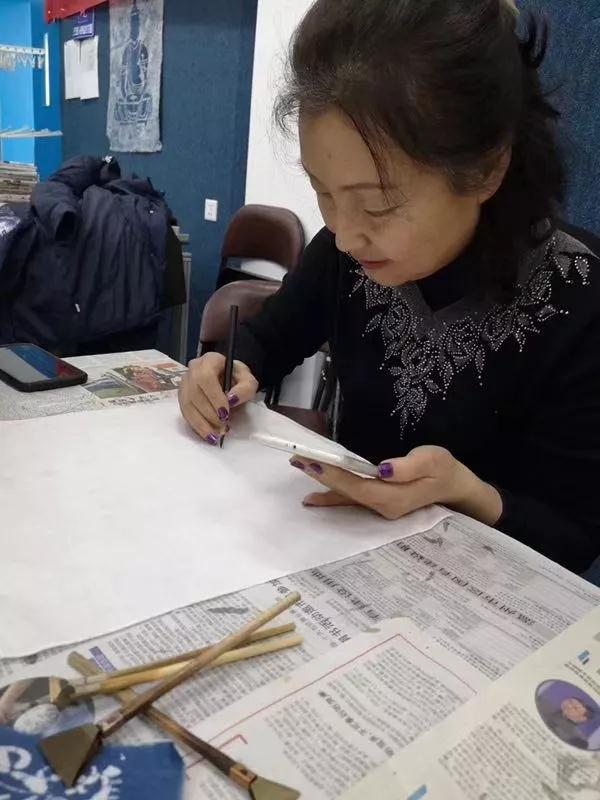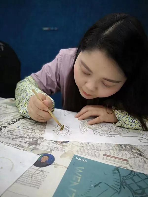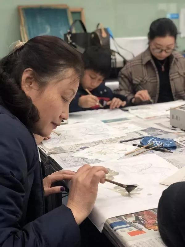 蜡染,是我国古老的少数民族民间传统纺织印染手工艺,用蜡刀蘸熔蜡绘花于布后以蓝靛浸染,既染去蜡,布面就呈现出蓝底白花或白底蓝花的多种图案,同时,在浸染中,作为防染剂的蜡自然龟裂,使布面呈现特殊的“冰纹”,色调素雅,风格独特,尤具魅力。负责人耐心地为大家介绍,了解到蜡染的制作过程,参与者们跃跃欲试。