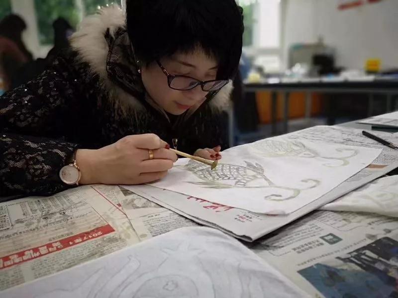 3月9日下午,beat365网页版登录官网“创意工匠”系列活动——“蜡染工艺”体验活动在服装楼201染印室展开,活动吸引了近20位体验者参与。