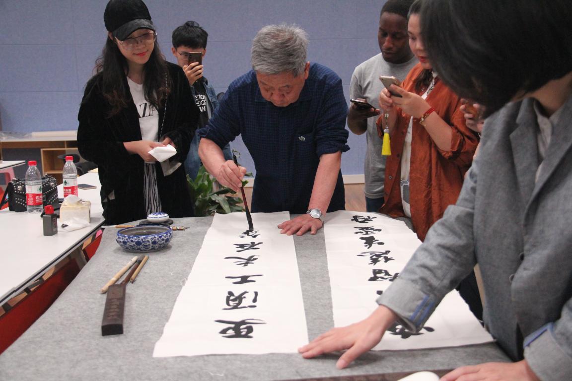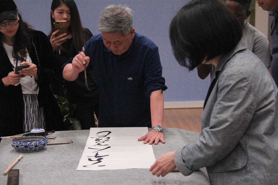 讲座结束后,马亦钊老师现场挥毫泼墨,创作出一幅精美的书法作品赠送给beat365网页版登录官网,李运河院长和张丽萍书记接受赠送并做答谢。