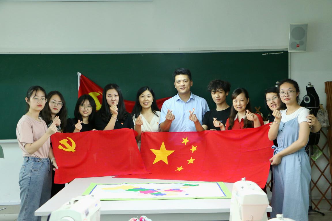 6月27-28日,学院拼布工作室学生在服装与服饰设计专业马俊淑老师指导下,手工制作党旗,献礼建党98周年。