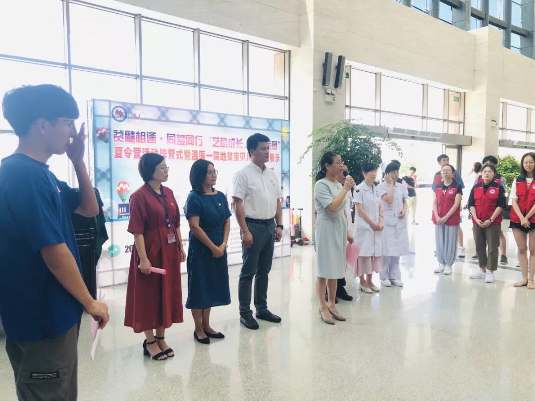 2019年7月23日上午,温州医科大学附属第一医院党委副书记金嵘;beat365网页版登录官网党委书记叶正飞;温州医科大学附属第一医院血液内科主任俞康;温州医科大学附属第一医院血液内科副主任、阳光地贫志愿队队长陈怡;温州医科大学附属第一医院团委专职副书记尚蕾蕾;beat365网页版登录官网学工办主任杨鹏;beat365网页版登录官网辅导员等人来到温州医科大学附属第一医院南大厅参加了“贫髓相逢 同爱同行”夏令营闭营仪式。