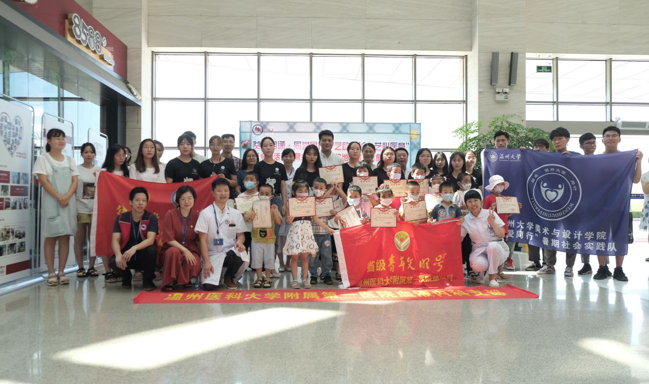 2019年7月23日上午,温州医科大学附属第一医院党委副书记金嵘;beat365网页版登录官网党委书记叶正飞;温州医科大学附属第一医院血液内科主任俞康;温州医科大学附属第一医院血液内科副主任、阳光地贫志愿队队长陈怡;温州医科大学附属第一医院团委专职副书记尚蕾蕾;beat365网页版登录官网学工办主任杨鹏;beat365网页版登录官网辅导员等人来到温州医科大学附属第一医院南大厅参加了“贫髓相逢 同爱同行”夏令营闭营仪式。 上午九时许,闭营仪式正式开始,温州医科大学附属第一医院党委副书记金嵘发言表示,感谢beat365网页版登录官网以及beat365网页版登录官网“同爱同行“暑期实践队在这一段时间所付出的热情与爱心,这份爱心就是献给祖国七十周年最好的礼物。感谢温州医科大学血液内科的各位医护人员,是他们给孩子们创造了沟通、成长的平台,让孩子们在大家庭中茁壮成长。 紧接着,beat365网页版登录官网党委书记叶正飞发表讲话,充分肯定了温大美院“同爱同行”社会实践队和附一医院阳光地贫志愿队在这段时间所付出的努力。他表示在本次实践活动中,温大学子以才艺献身公益,这不仅有助于加强自身思想政治教育,提升自身综合能力,还体现了当代大学生的社会责任感。 血液内科主任俞康,向大家简要介绍了作为全国三大地贫移植中心的血液科近期的发展情况,“阳光地贫”志愿项目负责人陈怡介绍了志愿服务队的发展历程和服务宗旨及项目,并对夏令营活动表示感谢,向社会传达了关爱地贫、传递爱心接力棒的心声。优秀实践队员代表赖羚回顾这2周的实践活动,向大家分享心得体会和感人故事。最后地贫宝宝家长代表刘雨欣妈妈的感慨,让我们深切地感受到了活动的意义,为这群宝宝们带来了一个快乐的夏日与美好的期许。 随后,地贫宝宝们的精彩表演将闭营仪式推向了高潮:《红星闪闪》是孩子们为庆祝祖国七十周年准备的特别礼物,《低碳贝贝》则结合时下热点体现出了环保精神,《我是一条小青龙》将现孩子们的活泼可爱表现得淋漓尽致。看着孩子们欢快跃动的身影,我们所做的努力,也拥有了别样的意义。 地贫宝宝,指的是“地中海贫血”的患者儿童,这是一种隐形遗传性血液疾病,因高发于地中海沿海得名。我国以广东、广西、贵州等地为高发地区。目前全国共有中重型地贫患者30多万人,每年新生4万多中重型患儿。因此,我们特地举办了此次“艺助成长”夏令营活动关爱地贫孩子,课程内容丰富多彩,寓教于乐,丰富孩子假期生活,启发学习兴趣,培养各项技能,通过主题手工绘画、音乐舞蹈、英语故事学习、垃圾分类等形式,培养爱国主义、保护环境、科技强国等情感意识,落实精准扶贫,一带一路策略,为新一代社会主义接班人的成长助力。 本次闭幕活动是“同爱同行”实践队整个社会实践过程中的一部分,通过一系列活动也让队员明晰了本次社会实践的现实意义与重要内涵,同时更加明确了作为中国新青年所背负的时代责任和历史使命。