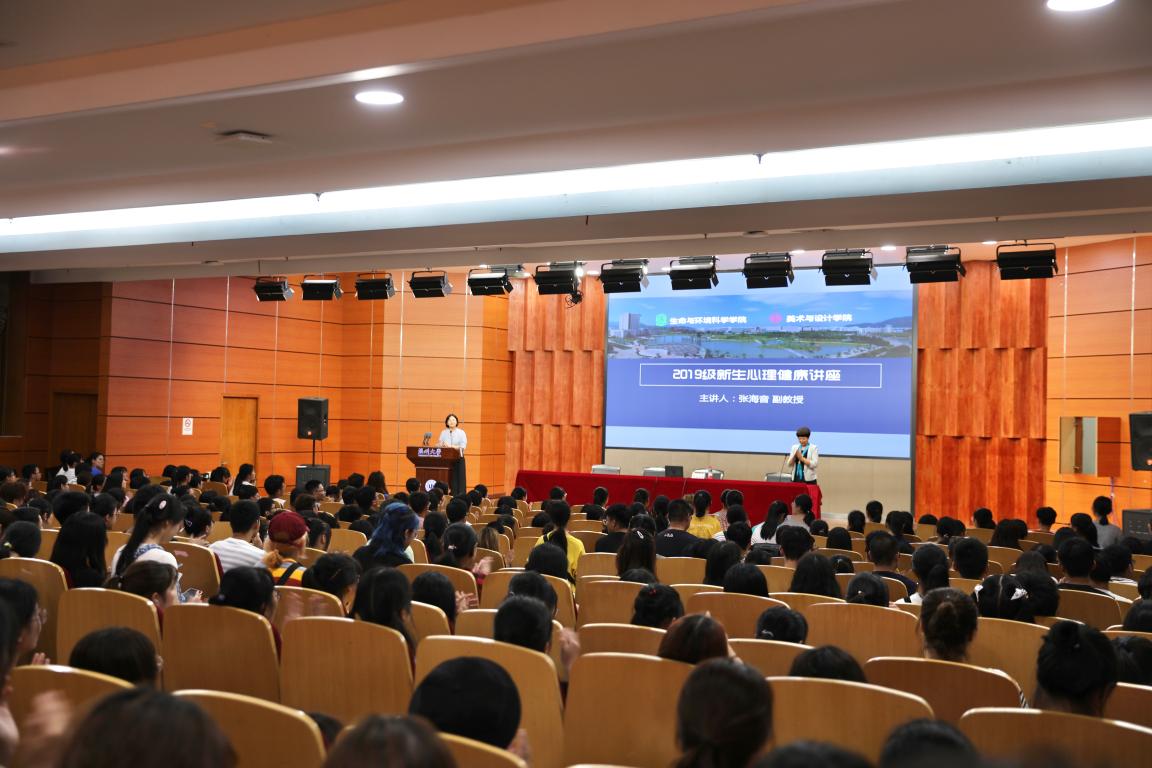 2019年9月6日晚6:30,由beat365网页版登录官网和生命与环境科学学院共同举办的2019级新生心理健康讲座于岩松堂雁山厅顺利举行。本次讲座由beat365网页版登录官网心理专家张海音副教授主讲,给新生们带来了一场“干货满满”的心理适应之旅。