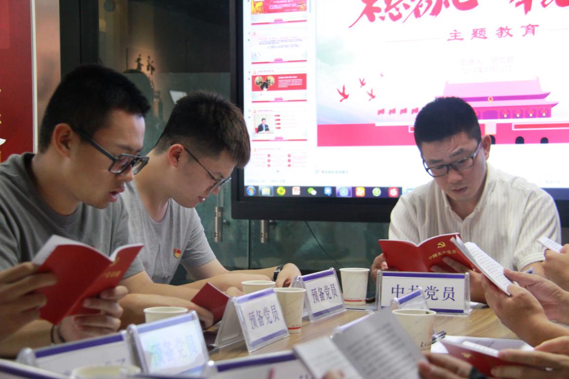 在大家朗读完党章后,由胡文超同志进行关于“不忘初心、牢记使命”的主题教育宣讲。宣讲围绕着“主题教育的根本任务”和“做新时代合格共产党员”两个话题。胡文超同志强调,要做到增强“四个意识”,坚定“四个自信”,做到“两个维护”。在开展主题教育中要注意抓“四个到位”:一是抓思想认识到位,二是抓检视问题到位,三是抓整改落实到位,四是抓组织领导到位。这为开展主题教育提出了新要求、明确了新方向,是进一步做好主题教育的重要遵循,有助于推动主题教育往深里走、往心里走、往实里走。接着,胡文超同志就“争做新时代合格共产党员”这一话题展开了宣讲。胡文超同志敦促新时代党员应当“加强思想引领切实以学促建”、“坚持领导带头 注重以上率下 ”、“学习党史党规真诚知党爱党”、“改进工作作风做到亲民为民”、“突出问题导向力求教育实效”。