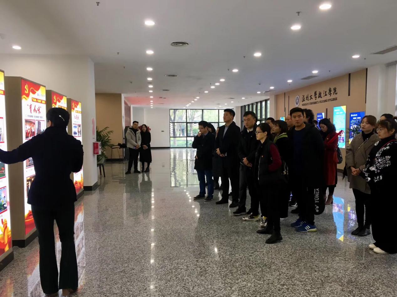 活动第一项内容,参观beat365网页版登录官网瓯江学院“瓯江红”党员之家,依次参观了党史学习区、党建教育区、以及党建成果区域,瓯江学院组织部张青青老师细心地向各位党员介绍分享了瓯江学院党建工作的特色做法和多项成果,党员们纷纷赞叹、启发良多。