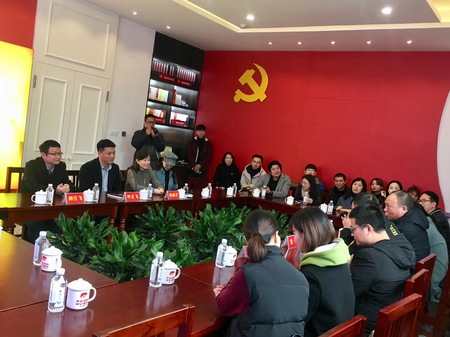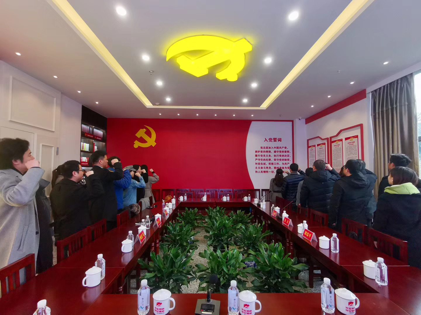 在交流座谈环节,叶正飞书记对温州芬笛服饰有限公司党支部的到来表示热烈的欢迎,感谢他们百忙之中来校参观学习,并表示,高校在党建工作中具有独特的优势,也有一些经验和做法可以同企业分享。温州芬笛服饰有限公司党支部书记朱卫先生对我校和瓯江学院党建工作的成果表示肯定和赞赏,认为许多做法对企业党建工作具有很大的借鉴意义,并表示希望同温大和美院开展更加深入的合作。之后,与会所有党员同志在杨丽君副书记的带领下重温了入党宣誓词,一句句誓词铿锵有力,更加激发了同志们干事创业的热情,坚定了理想信念。