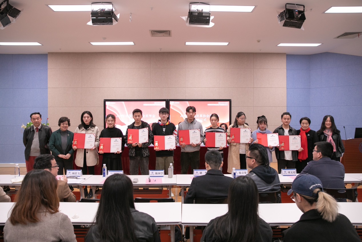聂玉梅副秘书长代表协会宣读了《beat365网页版登录官网2019年中国皮革协会奖学金获奖名单》。与会嘉宾为34名获奖学生颁发证书和奖金并合影留念。
