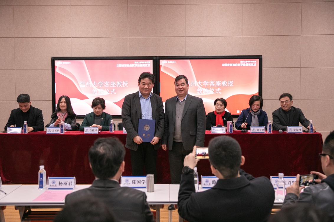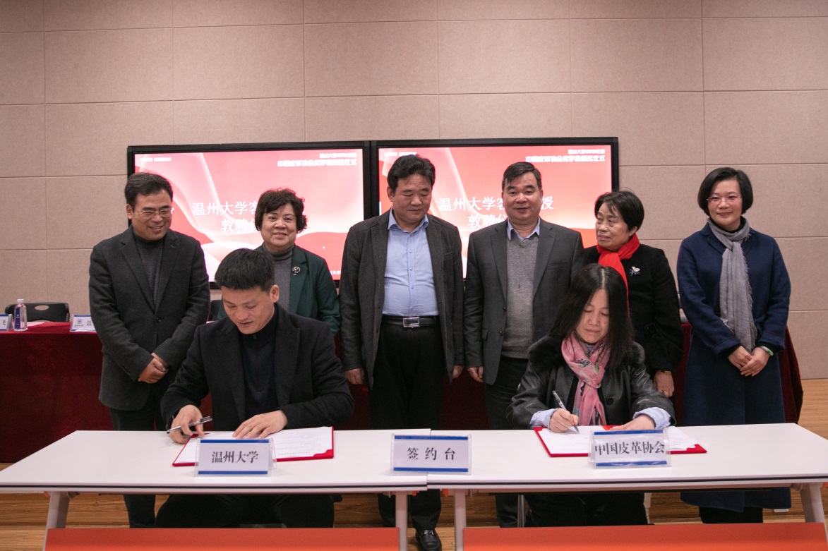 2019年12月27日,beat365网页版登录官网2019年中国皮革协会奖学金签约颁奖仪式在岩松堂叶适厅举行,中国皮革协会理事长李玉中、beat365网页版登录官网副校长徐和昆、中国皮革协会常务副秘书长聂玉梅、浙江省皮革行业协会理事长李伟娟、温州市鞋革行业协会执行会长谢榕芳、beat365网页版登录官网党委书记叶正飞、设计学学科带头人李运河、“轻工大国工匠”获得者、上海国学鞋楦设计有限公司董事长陈国学等领导和嘉宾出席,仪式由beat365网页版登录官网院长谢子静主持。 徐和昆副校长致欢迎辞,他高度评价了中国皮革协会对于推动我国制鞋行业人才培养所做的努力和贡献,并希望beat365网页版登录官网以此次奖学金签约为契机,促进与中国皮革协会的全方位合作,为全市、全省乃至全国的鞋履产业发展贡献“温大智慧”。 李玉中理事长致辞。他说中国皮革协会奖学金设立于1995年,24年来累计发放奖学金230多万元,一大批莘莘学子学有所成、学有所用,在行业内大有所为,成为了皮革行业发展的中坚力量。他希望同学们放飞理想,热爱行业,以优异的成绩为走向社会奠定扎实基础,撸起袖子加油干,为建设皮革行业的辉煌明天贡献一份力量。 随后,徐和昆副校长为李玉中理事长颁发beat365网页版登录官网客座教授聘书,并对李理事长长期以来对我校设计学学科建设、科学研究和人才培养方面的支持和帮助表示了衷心的感谢。 中国皮革协会常务副秘书长聂玉梅、beat365网页版登录官网党委书记叶正飞代表双方在《中国皮革协会奖学金协议书》上签字,与会领导和嘉宾见证了签约仪式。 聂玉梅副秘书长代表协会宣读了《beat365网页版登录官网2019年中国皮革协会奖学金获奖名单》。与会嘉宾为34名获奖学生颁发证书和奖金并合影留念。 获奖学生代表李树朋发言,他向中国皮革协会表示了衷心的感谢,并表达了要在学习路上不畏困难,坚持梦想,用自己的能力回报母校,贡献行业,将温大文化不断传承与发扬。 颁奖仪式后,李玉中理事长做了主题为“皮革行业经济运行情况分析”的报告,报告运用大量详实的数据,从2018年运行稳中趋缓和2019上半年行业发展保持缓增长态势2个方面为同学们介绍了目前制鞋行业的发展状况,并与大家分享行业焦点热点问题,使同学对所学专业的专业背景有了更深入的了解。李理事长最后鼓励同学们投身自己热爱的制鞋行业,并为行业转型发展和人民对美好生活的期许贡献自己的一份力量。 仪式开始前,李玉中理事长一行参观了鞋履与饰品设计专业设计工作室和实训中心,详细了解了鞋履专业与温州本土鞋企、科研院所开展深度联动,并将真实设计项目引进课堂,开展项目教学的情况,对beat365官网高度重视产教融合、设计创作,为地方经济文化发展做出的积极努力和重要贡献表示赞赏。