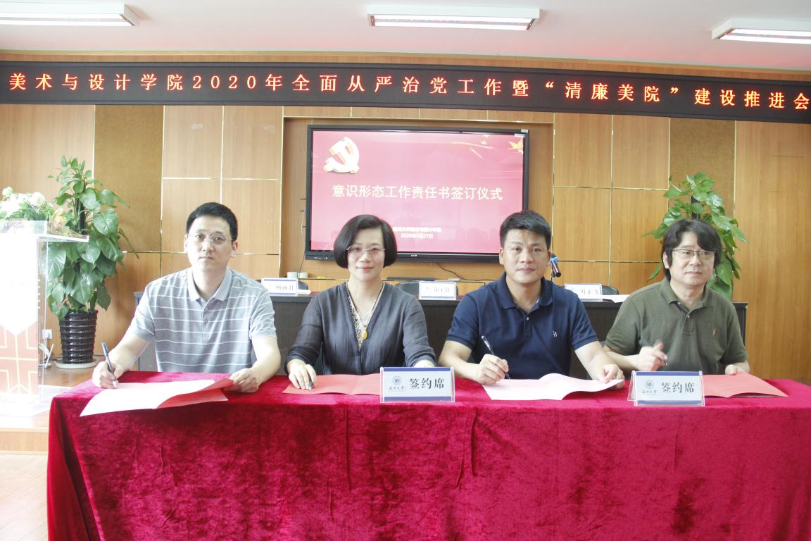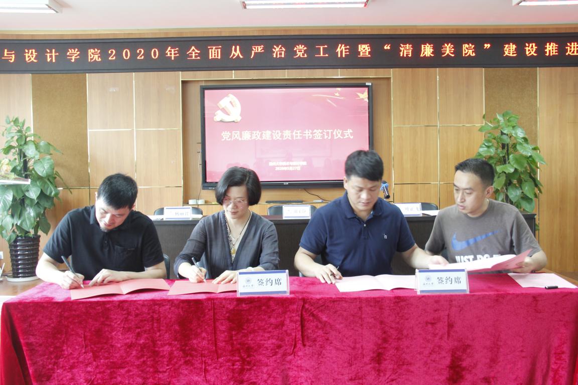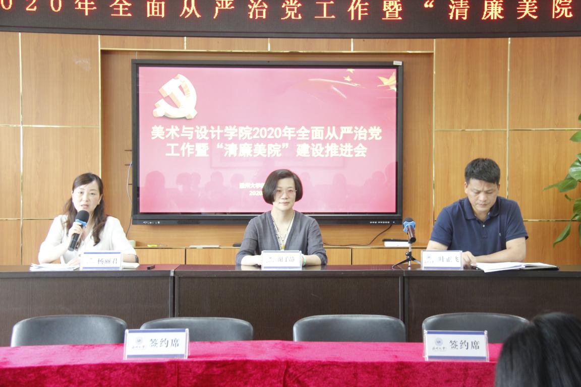5月27日下午,beat365网页版登录官网在美术楼2B 4001召开2020年全面从严治党工作暨“清廉美院”建设推进会,学院全体班子成员、学院各二级单位负责人、学院全体纪委成员参加会议,会议由学院党委副书记、纪委书记杨丽君主持。 会上,杨丽君副书记传达了beat365网页版登录官网2020年全面从严治党工作暨“清廉温大”建设推进会的会议精神,要求学院全体中层干部认真学习贯彻校党委书记谢树华、校长赵敏和校党委委员、纪委书记、省监委驻温大监察专员杨林书在大会上的重要讲话精神,结合学院实际工作,进一步加强政治建设、筑牢“清廉之基”,加强组织建设、打造“清廉之柱”,加强作风建设、营造“清廉之风”,加强监督执纪、构建“清廉之治”,切实扛起“三个地”的使命担当,全面落实“四责协同”机制,一体推进“三不”建设,立德树人、勠力同心,为学院各项事业发展提供政治保障。 叶正飞书记就加强学院全面从严治党工作做重要部署,强调重点做好五个方面的工作,一是要把政治建设放在首位,坚决做到两个维护、树立四个意识、坚定四个自信;二是要把思想建设作为总开关,用习近平新时代中国特色社会主义思想武装头脑;三是要把组织建设摆在突出位置,夯实学院事业发展的基础;四是要进一步加强作风建设,营造良好政风、院风、教风、学风;五是要进一步加强监督执纪,扎实推进全面从严治党工作,扎实推进学院全面从严治党工作取得新的成效。 会上,学院院长谢子静和党委书记叶正飞与学院各二级单位负责人分别签订了“beat365网页版登录官网党风廉政建设责任书”、“beat365网页版登录官网”两个责任书,学院每位中层干部都签订了廉洁自律承诺书,夯实学院党风廉政建设,落实全面从严治党责任。 之后,杨丽君副书记为学院全体中层干部做题为“建设清廉美院,为发展保驾护航”党风廉政建设专题辅导报告。