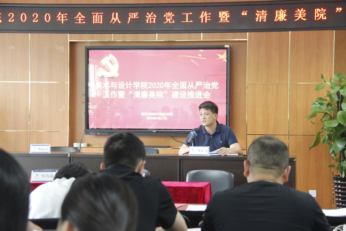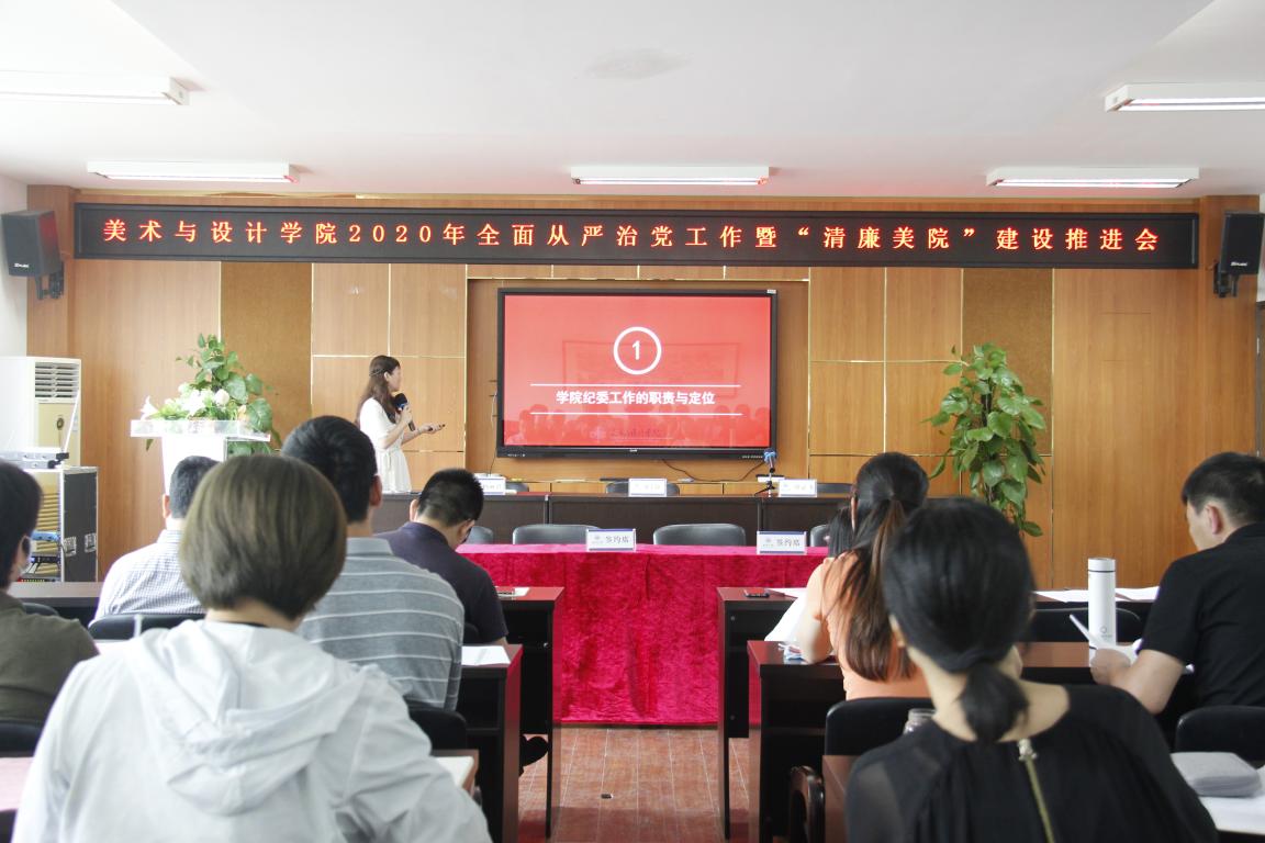 5月27日下午,beat365网页版登录官网在美术楼2B 4001召开2020年全面从严治党工作暨“清廉美院”建设推进会,学院全体班子成员、学院各二级单位负责人、学院全体纪委成员参加会议,会议由学院党委副书记、纪委书记杨丽君主持。